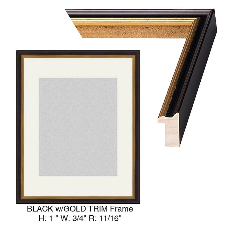These are NOT ready-made frames! This piece will be produced for you in fine grain select hardwoods with a beautiful ebony black with gold inner ridge furniture finish.