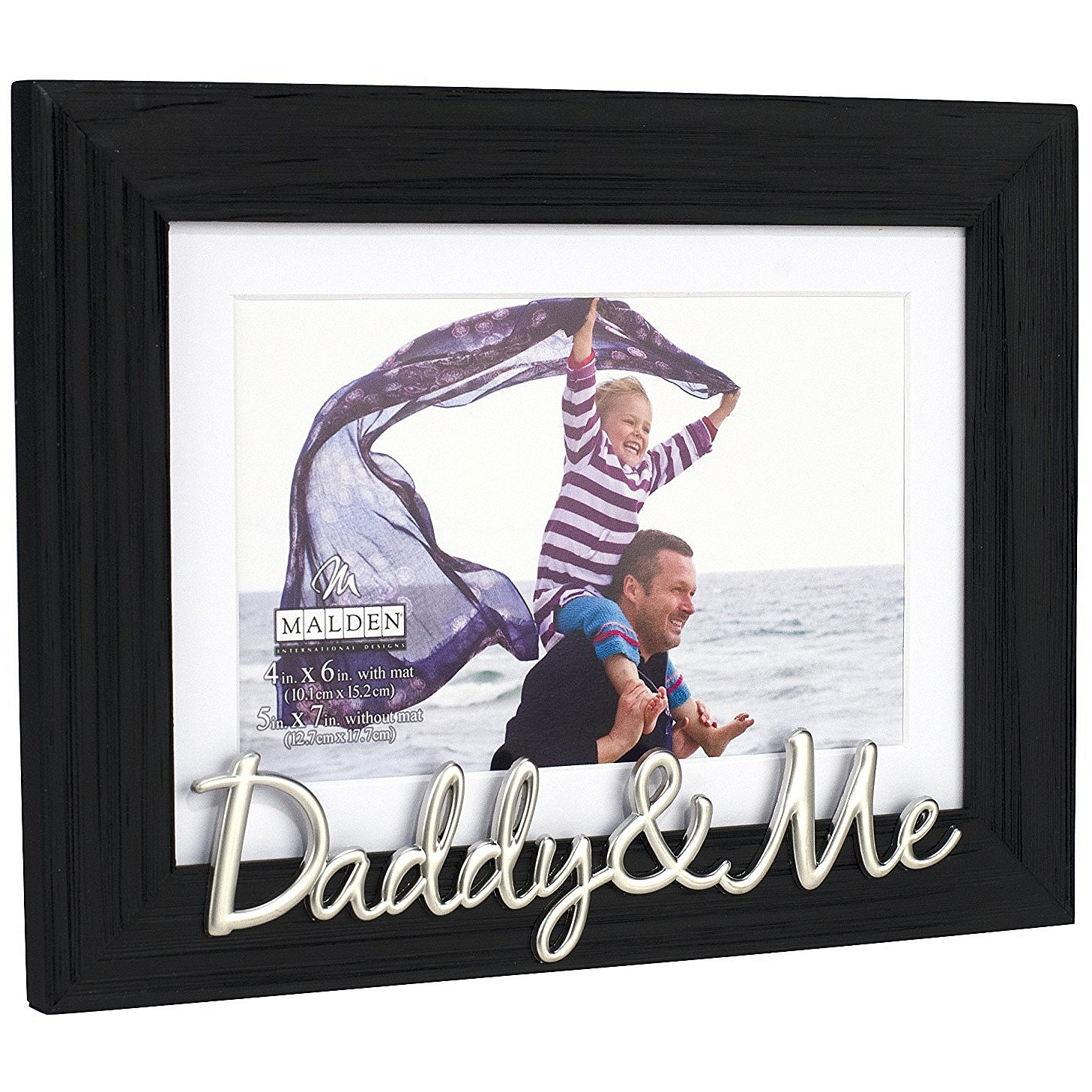 Main view Product Details Malden Designs® DADDY + ME ebony-black matted 5x7/4x6 keepsake frame — For your special Dad, a frame all his own. Add a great photo and you have a gift that will make any father beam with joy anytime he sees it ! Displays a 4"x6" print with its mat; a 5"x7" print without mat.Fashioned in distressed black wood stain finish with pewter applique words. Glare resistant glass lens.Produced by Malden Design®. DADDY + ME ebony-black matted 5x7/4x6 keepsake frame Model #096287148740 List $19.00 You pay $12.95 In stock Ships next business day [?] Your Price Match is Active Your request for a price of $0.00 for a minimum quantity of has been accepted. You have [time] left to purchase this item for $0.00 instead of $12.95 each. Find a Lower Price? We BEAT All Authorized Retailers [?] FEATURESDisplays:4"x6"Material:Wood (mdf/engineered)Finish:Black, SilverOccasion:Valentine`s Day, Father`s DayStyle:Distressed - Weathered, Sports & leisure, Words & whimsy, Sentiments | ready madeOrientation:Horizontal OnlyBrand:Malden Designs®Display Type:Desktop or Wall Approx. Overall Dimensions:8"x5 3/4"x1" This item ships in its own box SHARE THIS ITEM Share on Facebook