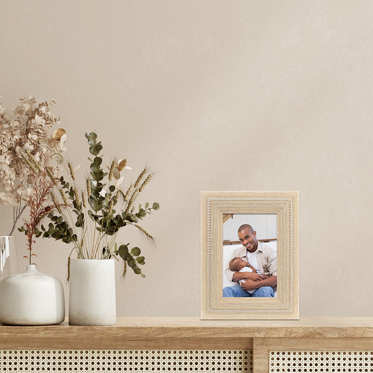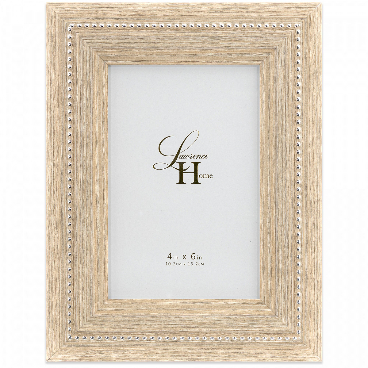 Main view Product Details Lawrence Frames® Whitmore Natural Ash-Look with Silver Bead 4x6 frame — Quality composite decorative picture frame with soft tan wood grain finish. Easy open turn button black velvet backing makes it simple to open and insert your photo. Includes hangers for wall mounting and easel backing for tabletop display. By Lawrence® Whitmore Natural Ash-Look with Silver Bead 4x6 frame Model #48092562 List $17.00 You pay $12.95 This item IS in stock and can be expected to ship 11/17/2025 Your Price Match is Active Your request for a price of $0.00 for a minimum quantity of has been accepted. You have [time] left to purchase this item for $0.00 instead of $12.95 each. Find a Lower Price? We BEAT All Authorized Retailers [?] FEATURESDisplays:4"x6"Material:Acrylic | ResinFinish:Brown(Light)/Tan, NaturalOccasion:Home decorating, Housewarming, Weekend Host GiftsStyle:Classic, Contemporary, Distressed - Weathered, Rustic/Lodge, TraditionalOrientation:BothBrand:Lawrence Frames®Display Type:Desktop or Wall Approx. Overall Dimensions:6 3/8"x8 3/8"x13/16" This item ships in its own box SHARE THIS ITEM Share on Facebook
