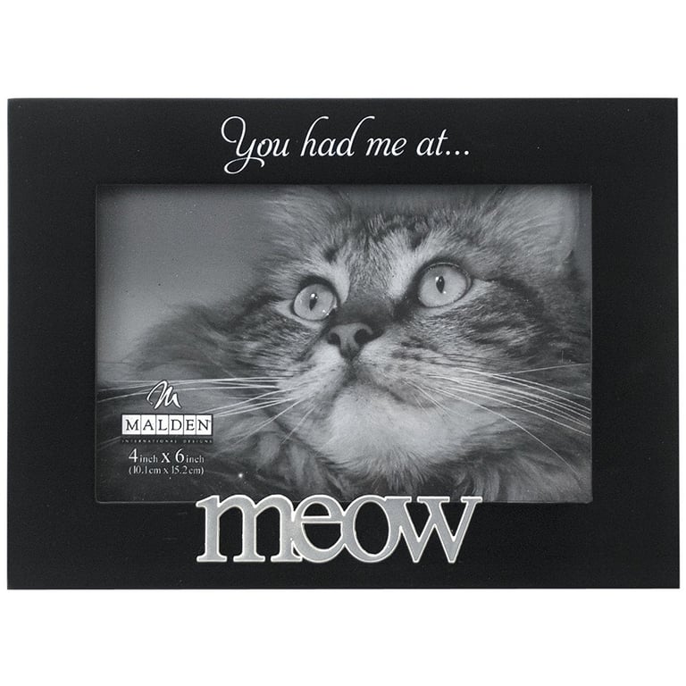 Product Details Malden Designs® YOU HAD ME AT MEOW frame by Malden® — The MEOW frame is great place to showcase your favorite furry friend. You had me at ... meow Fashioned in black mat finish wood. Glare resistant glass lens.Produced by Malden Design®. YOU HAD ME AT MEOW frame by Malden® Malden Designs® FALL CELEBRATION Savings - ends SundayBuy More / Save More * Add this item to your cart for the full details of this promotion. Conditions may apply. Model #87133159 List $18.00 You pay $12.95 In stock Can be shipped today [?] Your Price Match is Active Your request for a price of $0.00 for a minimum quantity of has been accepted. You have [time] left to purchase this item for $0.00 instead of $12.95 each. Find a Lower Price? We BEAT All Authorized Retailers [?] FEATURESDisplays:4"x6"Material:Wood (mdf/engineered)Finish:BlackOccasion:Friendship, Weekend Host Gifts, Pet LoveStyle:Animals & pets, Traditional, Words & whimsy, Expressions > ready madeOrientation:Horizontal OnlyBrand:Malden Designs®Display Type:Desktop or Wall Approx. Overall Dimensions:8 1/4"x7"x1" This item ships in its own box SHARE THIS ITEM Share on Facebook