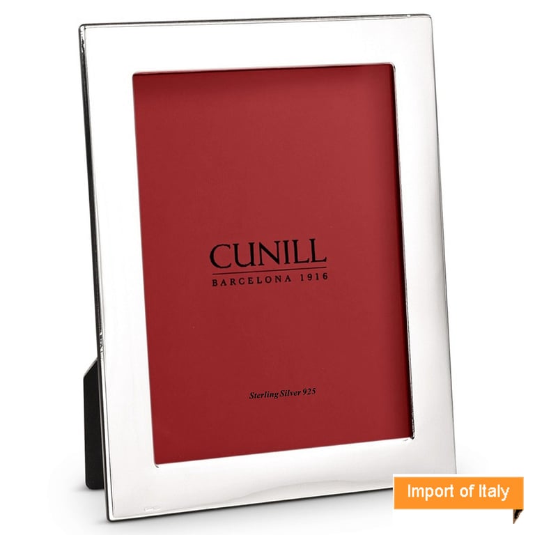 Back to results Scroll Items 792 of 11332 Family Members 4"x6" - PLAIN 1-inch Silverplate $79.95 8"x10" - PLAIN 1-inch Silverplate $164.95 Main view we do beautiful engraving Product Details Cunill® Silver The PLAIN Silver Overlay 1in border 5x7 frame by Cunill® — Cunill's PLAIN 1" is an elegant style at a very attractive price. Its called 'PLAIN' by Cunill, but there's nothing plain about it. The Cunill quality is unsurpassed - even to the backing which is a fitted wood piece to lock-in your photo. Cunill silver overlay is formed by permanently bonding a thin layer of pure sterling silver onto a base metal. This gives it the look and feel of solid sterling silver, at a lower price, but without sacrificing quality. Personalizing available. Look for the Personalize This Item link on each item page. Gift packaged in the luxe signature Cunill red storage box. Crafted in - and imported from - Cunill Italy. The PLAIN Silver Overlay 1in border 5x7 frame by Cunill® Model #16129163 List $150.00 You pay $137.95 In stock Ships next business day [?] Your Price Match is Active Your request for a price of $0.00 for a minimum quantity of has been accepted. You have [time] left to purchase this item for $0.00 instead of $137.95 each. Find a Lower Price? We BEAT All Authorized Retailers [?] FEATURESDisplays:5"x7"Material:SilverplateFinish:SilverOccasion:Anniversary, Baby shower, Bar & Bat Mitzvah, Business & office, Baptism + Christening, Communion, Congratulations, Engagement, Good luck, Graduation, Housewarming, Mother`s Day, New baby, Retirement, Valentine`s Day, Wedding, Father`s DayStyle:Contemporary, Minimal, Sophisticated, TraditionalOrientation:BothBrand:Cunill® SilverDisplay Type:Desktop Only This item ships in its own box SHARE THIS ITEM Share on Facebook