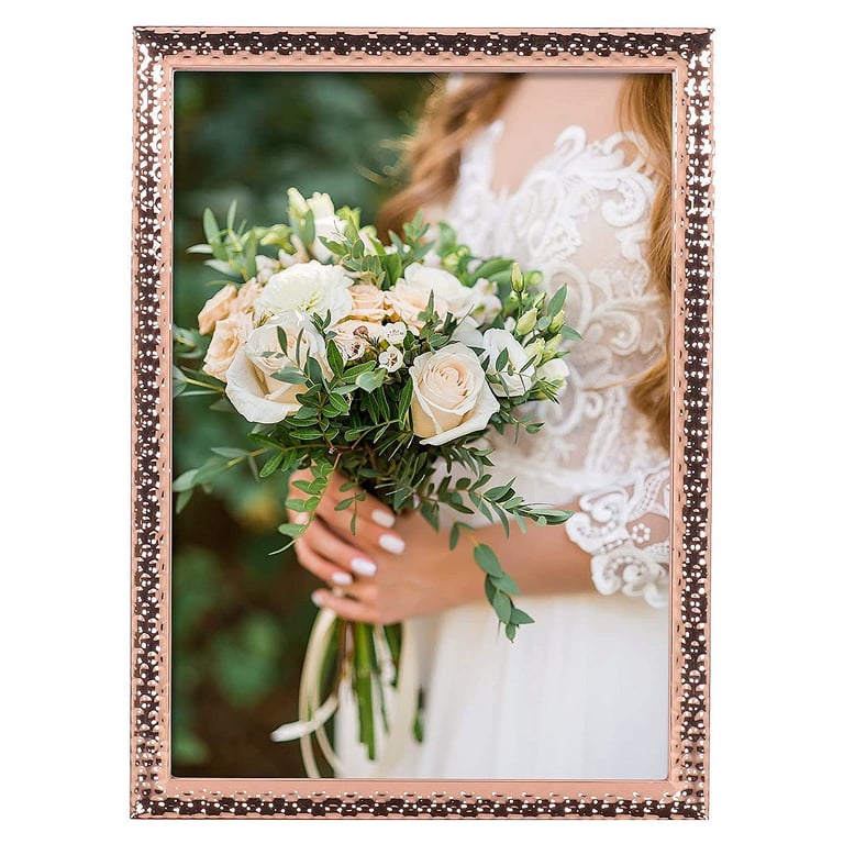 Main view Product Details Lawrence Frames® Hammered Copper finish 5x7 frame by Lawrence® — Decorative copper metal hammered design picture frame. Heavy weight cast metal picture frame is made with exceptional workmanship. Decorative hammered effect picture frame High quality black velvet backing Vertical or horizontal tabletop display or can be hung on a wall with installed hangers Wipe clean with dry cloth, glass included Individually boxed By Lawrence®. Hammered Copper finish 5x7 frame by Lawrence® Model #751148075312 List $30.00 You pay $24.95 This item is currently out of stock and we do not have an expected date at the present time. click here to be automatically notified when it comes back in stock or email merchandising@sendaframe.com for availability information. You can place this item in your shopping cart. It will be added to the 'saved for later' section. Your Price Match is Active Your request for a price of $0.00 for a minimum quantity of has been accepted. You have [time] left to purchase this item for $0.00 instead of $24.95 each. Find a Lower Price? We BEAT All Authorized Retailers [?] FEATURESDisplays:5"x7"Material:Metallic (all)Finish:CopperOccasion:Business & office, Home decoratingStyle:Contemporary, SophisticatedOrientation:BothBrand:Lawrence Frames®Display Type:Desktop or Wall This item ships in its own box SHARE THIS ITEM Share on Facebook