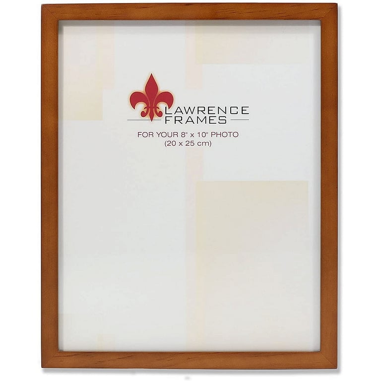 Main view Product Details Lawrence Frames® Nutmeg Square-Corner 8x10 frame by Lawrence® — Our lovely Nutmeg-Brown frame is elegant and an easy style to decorate with.Constructed of matched varnished hardwoods with tailed corners and exact fitting back. Frame edge is a very contemporary ½" all-around.Dual easel for landscape or portrait tabletop use; wall mounting hooks included. Glare resistant glass lens.This is a classic style at a great price. Quality crafted by Lawrence Frames®. Nutmeg Square-Corner 8x10 frame by Lawrence® Model #48064972 List $24.50 You pay $17.95 In stock Ships next business day [?] Your Price Match is Active Your request for a price of $0.00 for a minimum quantity of has been accepted. You have [time] left to purchase this item for $0.00 instead of $17.95 each. Find a Lower Price? We BEAT All Authorized Retailers [?] FEATURESDisplays:8"x10"Material:Wood (full grain)Finish:Brown, Brown(Light)/TanOccasion:Business & office, Congratulations, Craft Projects, Home decorating, Teacher gifts, Team & coach gifts, Thank-Motivate-RewardStyle:Classic, Contemporary, Minimal, TraditionalOrientation:BothBrand:Lawrence Frames®Display Type:Desktop or Wall This item ships in its own box SHARE THIS ITEM Share on Facebook