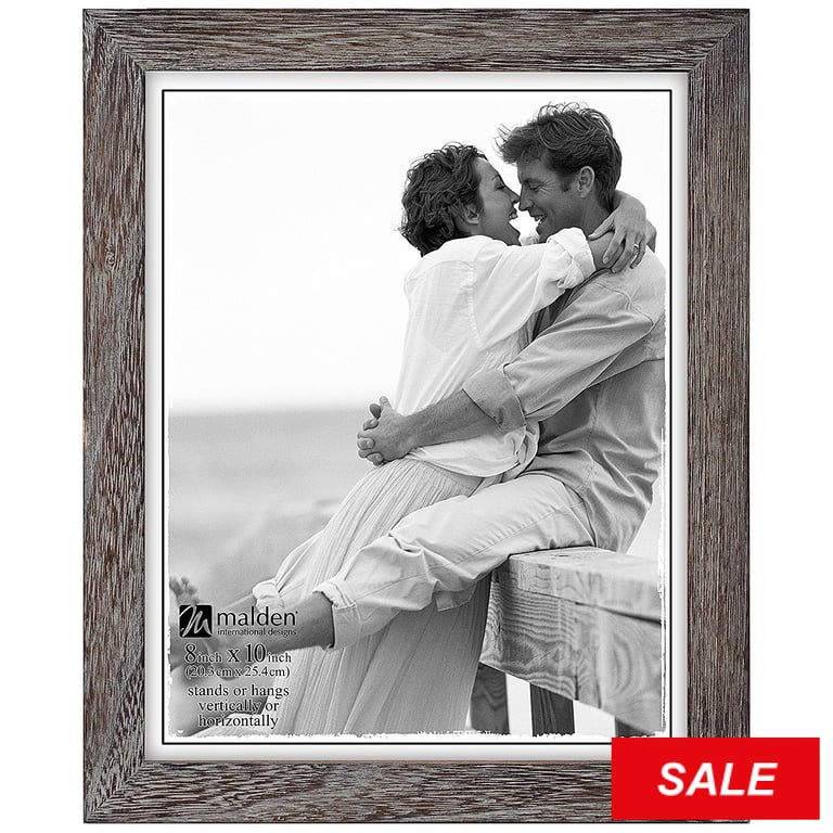 Product Details Malden Designs® GRAY RIDGE LINEAR Wood 8x10 frame by Malden® — A RIDGE LINEAR wood picture frame with a weathered veneer. Glare resistant glass lens; easel back for dual standing on a tabletop. Crafted by Malden USA®. GRAY RIDGE LINEAR Wood 8x10 frame by Malden® Model #096287140362 List $17.00 You pay $13.95 In stock Can be shipped today [?] Your Price Match is Active Your request for a price of $0.00 for a minimum quantity of has been accepted. You have [time] left to purchase this item for $0.00 instead of $13.95 each. Find a Lower Price? We BEAT All Authorized Retailers [?] FEATURESDisplays:8"x10"Material:Wood (full grain)Finish:Gray/CharcoalOccasion:Friendship, Home decorating, Retirement, Teacher gifts, Team & coach gifts, Celebrating TravelsStyle:Rustic/Lodge, Shabby Chic, Sports & leisure, Distressed - Weathered, Coastal, Nautical & ShoreOrientation:BothBrand:Malden Designs®Display Type:Desktop or Wall Approx. Overall Dimensions:9 5/8"x11 5/8"x15/16" This item ships in its own box SHARE THIS ITEM Share on Facebook