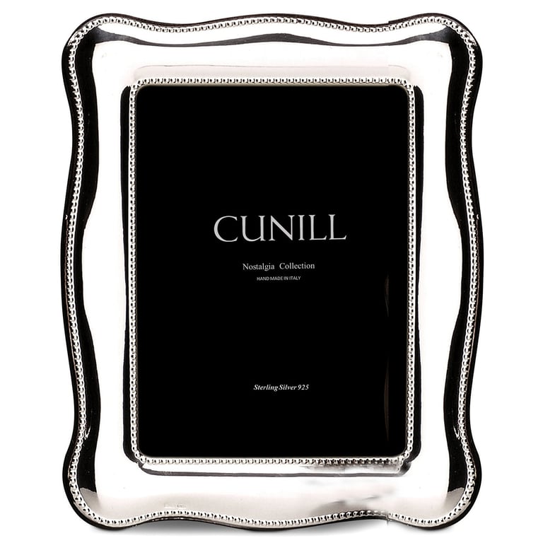 Main view sample back Product Details Cunill® Silver ATHENA BEAD Nostalgia Group Sterling Silver 5x7 frame by Cunill® — From the Cunill archives, ATHENA BEAD is a wonderful period style in heirloom quality, hand-tooled sterling silver.The Cunill quality is unsurpassed. Each piece is made from a single sheet of fine sterling silver.Even the backing, a fitted wood piece to easily lock-in your photos, makes this a home decorative piece rather than a simple "frame". Note the signature sterling lozenge latch - a hallmark of Cunill since 1916. Each piece is debossed on front with the family mark and .925 (sterling silver), proudly giving signature to the quality this 100+ year old company has earned.Cunill sterling never needs polishing - it is finely lacquered to keep it tarnish free. Shipped in signature Cunill black gift box.The Cunill NOSTALGIA Collection, crafted in and imported from Italy. To view the complete collection, visit: Cunill® ATHENA BEAD Nostalgia Group Sterling Silver 5x7 frame by Cunill® Model #15810493 List $210.00 You pay $189.95 This item IS in stock and can be expected to ship 11/21/2025 Your Price Match is Active Your request for a price of $0.00 for a minimum quantity of has been accepted. You have [time] left to purchase this item for $0.00 instead of $189.95 each. Find a Lower Price? We BEAT All Authorized Retailers [?] FEATURESDisplays:5"x7"Material:Sterling Silver (fine)Finish:SilverOccasion:Anniversary, Baby shower, Birthday, Baptism + Christening, Communion, Engagement, Friendship, Good luck, Graduation, Romantic, Sweet 16, WeddingStyle:Antique, Art Deco, Art Nouveau, Sophisticated, RomanticOrientation:BothBrand:Cunill® SilverDisplay Type:Desktop Only This item ships in its own box SHARE THIS ITEM Share on Facebook