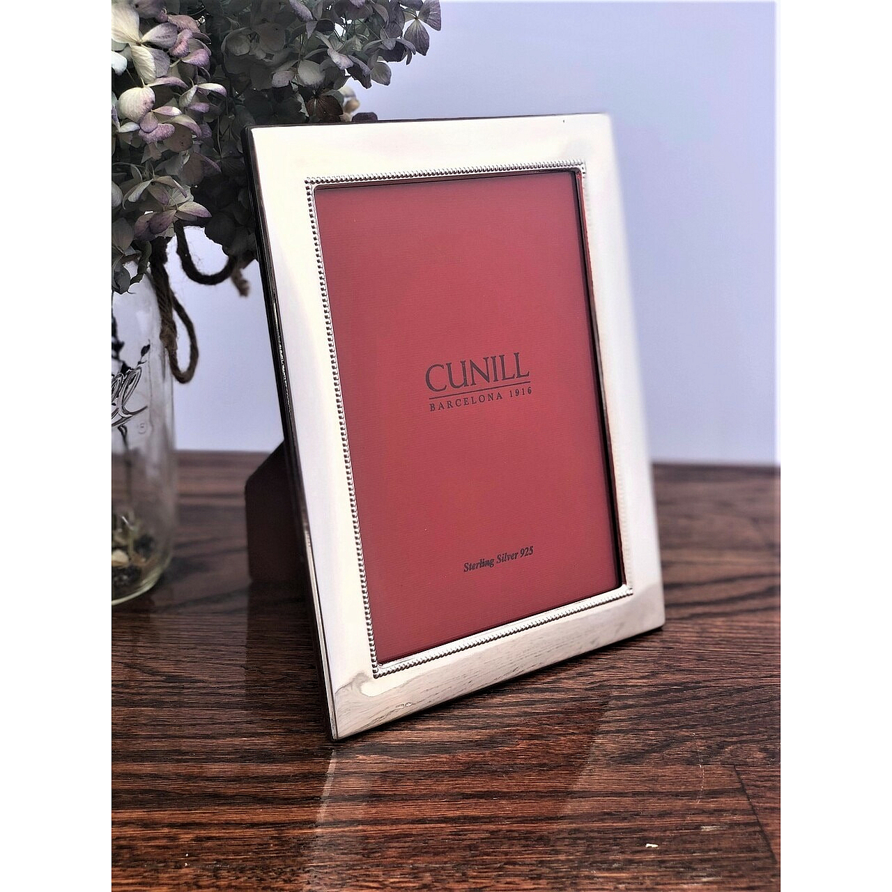 Main view Mfr authenticity mark Product Details Cunill® Italia WIDE w/Caviar Bead Fine Sterling Silver 4x6 frame by Cunill — Pressed from a single sheet of silver, Cunill's wide border has a beaded inner trim. An elegant style. The Cunill quality is unsurpassed - even to the backing which is a fitted wood piece to easily lock-in your photo. Cunill® sterling never needs polishing - it is finely lacquered to keep it tarnish free. 7/8" wide edge, beautifully engraves; we offer 2 lines per edge professional personalizing on this piece. Click Personalize This Item for details. Gift packaged in the luxe signature Cunill 2-piece red storage box. Crafted in - and imported from - Cunill® Italy. WIDE w/Caviar Bead Fine Sterling Silver 4x6 frame by Cunill Model #706098828563 List $190.00 You pay $146.95 In stock Ships next business day [?] Your Price Match is Active Your request for a price of $0.00 for a minimum quantity of has been accepted. You have [time] left to purchase this item for $0.00 instead of $146.95 each. Find a Lower Price? We BEAT All Authorized Retailers [?] FEATURESDisplays:4"x6"Material:Sterling Silver (fine)Finish:SilverOccasion:Anniversary, Baptism + Christening, Bar & Bat Mitzvah, Business & office, Communion, Congratulations, Engagement, Good luck, Graduation, Housewarming, Mother`s Day, Retirement, Valentine`s Day, WeddingStyle:Contemporary, Sophisticated, Traditional, Heirloom / Heritage, GlamOrientation:BothBrand:Cunill® ItaliaDisplay Type:Desktop Only Approx. Overall Dimensions:5 5/8"x7 5/8"x3/8" This item ships in its own box SHARE THIS ITEM Share on Facebook