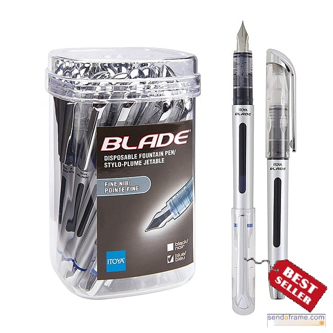 Main view Product Details Itoya Studio BLADE BLUE Ready-to-Write Fountain Pen by Itoya | BUY a BUCKET and SAVE — The revolutionary BLADE disposable fountain pen, from ITOYA®. Now in a specially priced bucket of 24 pens. Stunning design, advanced ink technology at a surprisingly affordable price. The new benchmark for all writing instruments. It features: 24 piece pack - specially priced Fully functioning fountain style pen - but disposable Lightweight, well-balanced barrel with translucent, see-thru design Flow-through design for effortless, clog-free writing Priced far less than comparable fountain pens Produced by Itoya® for SendAFrame. To view all styles, click: Itoya® Photo Filing Systems BLADE BLUE Ready-to-Write Fountain Pen by Itoya | BUY a BUCKET and SAVE ITOYA® Stock-up SAVINGS - ends Sunday: Buy More / Save More * Add this item to your cart for the full details of this promotion. Conditions may apply. Model #075633304344 List $100.00 You pay $89.95 This item IS in stock and can be expected to ship 02/02/2026 In stock Your Price Match is Active Your request for a price of $0.00 for a minimum quantity of has been accepted. You have [time] left to purchase this item for $0.00 instead of $89.95 each. Find a Lower Price? We BEAT All Authorized Retailers [?] FEATURESMaterial:Archival | Photo-SafeFinish:Blue, ClearOccasion:Back to School, Business & office, Hanukkah, Christmas, Corporate gifts, Father`s Day, Friendship, Graduation, RetirementStyle:Contemporary, Travel ReadyBrand:Itoya StudioDisplay Type:not applicable n/a This item ships in its own box SHARE THIS ITEM Share on Facebook