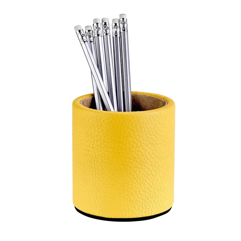 Main view Product Details Graphic Image® PENCIL CUP in Yellow Pebble-Grain Leather by Graphic Image™ — Round out the executive suite with this leather pencil cup. Our over-sized pencil cup holds an ample supply of writing instruments and other desk accessories. The handsome style works well on it's own or complemented by other pieces in the collection. Size: 2-7/8" x 4-1/4" Full-grain embossed leather Perfect for writing utensils, highlighters, makeup brushes and more Graphic Image™ hand crafts genuine leather-bound books and personal accessories like this wonderful accessory that have set the modern day standard for quality and design. PENCIL CUP in Yellow Pebble-Grain Leather by Graphic Image™ Model #611959751570 List $68.00 You pay $60.00 This item is currently out of stock and we do not have an expected date at the present time. click here to be automatically notified when it comes back in stock or email merchandising@sendaframe.com for availability information. You can place this item in your shopping cart. It will be added to the 'saved for later' section. Your Price Match is Active Your request for a price of $0.00 for a minimum quantity of has been accepted. You have [time] left to purchase this item for $0.00 instead of $60.00 each. Find a Lower Price? We BEAT All Authorized Retailers [?] FEATURESMaterial:Leather (fine)Finish:YellowOccasion:Business & office, Corporate gifts, Mother`s Day, Thank-Motivate-Reward, GraduationStyle:Bold Colors, Classic, College Dorm, Sophisticated, Sports & leisure, ContemporaryBrand:Graphic Image®Display Type:not applicable n/a Approx. Overall Dimensions:2 7/8"x4 1/4"x2 7/8" SHARE THIS ITEM Share on Facebook
