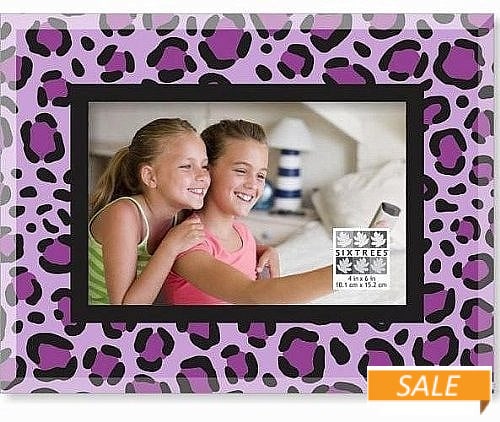 Product Details SIXTREES® PURPLE LEOPARD print glass frame by Sixtrees® — Take a trip into the wild with this fun and bold design. This glass picture frame features a purple leopard print pattern. With its glare resistant picture frame glass lens, it is a cute piece to have on a desk or night table.Dual easel back for portrait or landscape tabletop display.Produced by Sixtrees®. PURPLE LEOPARD print glass frame by Sixtrees® Model #783729175494 List $14.50 You pay $8.90 In stock Ships next business day [?] Your Price Match is Active Your request for a price of $0.00 for a minimum quantity of has been accepted. You have [time] left to purchase this item for $0.00 instead of $8.90 each. Find a Lower Price? We BEAT All Authorized Retailers [?] FEATURESDisplays:4"x6"Material:GlassFinish:Black, Pink, PurpleOccasion:Congratulations, Home decorating, Housewarming, Teacher gifts, Thank-Motivate-RewardStyle:Bold Colors, Contemporary, Pop Culture, Sports & leisure, Teens & tweensOrientation:BothBrand:SIXTREES® This item ships in its own box SHARE THIS ITEM Share on Facebook