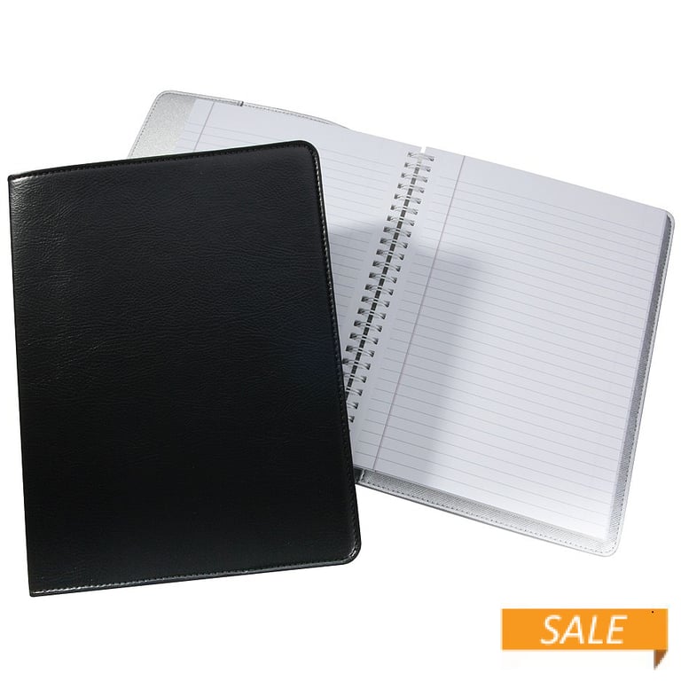 Product Details Graphic Image® SPIRAL JOURNAL 9-inch Black BONDED Leather by Graphic Image™ — The leather notebook that quickly becomes a writer's constant companion. This leather notebook includes a spiral insert with 144 lined perforated pages on gold-gilded premium paper. Handy for everyday note taking, business or journal writing. Genuine luxe bonded leather for superior wear Size: 7x9¼" Personalization is available in gold or blind stamping For additional refills, see ACCESSORIES below Graphic Image™ hand crafts genuine leather-bound books that have set the modern day standard for quality and design. SPIRAL JOURNAL 9-inch Black BONDED Leather by Graphic Image™ Model #611959022298 List $75.00 You pay $34.90 In stock Ships next business day [?] Your Price Match is Active Your request for a price of $0.00 for a minimum quantity of has been accepted. You have [time] left to purchase this item for $0.00 instead of $34.90 each. Find a Lower Price? We BEAT All Authorized Retailers [?] FEATURESDisplays:7"x9"Material:Leather (fine)Finish:BlackOccasion:Business & office, Corporate gifts, Employee honors, Good luck, Inspirational, Thank-Motivate-Reward, Back to SchoolStyle:Classic, Preppy, Traditional, ContemporaryBrand:Graphic Image®Display Type:not applicable n/a Approx. Overall Dimensions:7"x9 1/4" This item ships in its own box SHARE THIS ITEM Share on Facebook