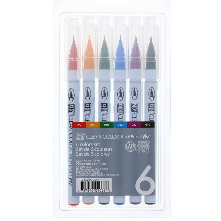 Clean Color Real Brush Marker - 6 Piece Set - by ZIG Kuretake®