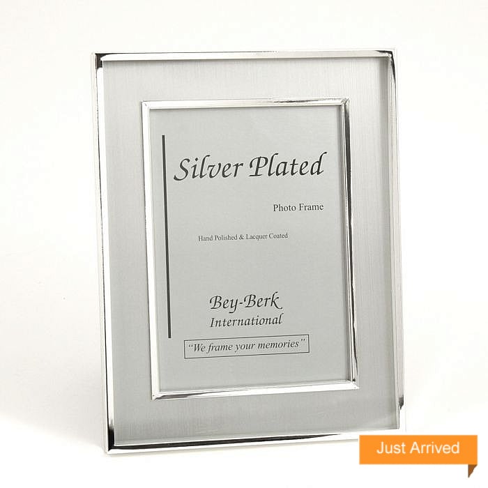 Main view Product Details Bey-Berk STEPPED Engraveable silverplate 5x7 frame — Stepped, wide border quality silverplate frame. Frame is brushed silver with high-polished outer and inner trim. Slide-in channel black felt back with dual easel for portrait or landscape desktop display. Features an elegant stay ribbon for limiting the easel's angle. Wall-mounts also included for easy hanging. Glare resistant glass lens. Ships in an attractive gift box.Click Personalize this item for more information.Quality crafted by Bey-Berk®. STEPPED Engraveable silverplate 5x7 frame BEY-BERK® FALL CELEBRATION SAVINGS - Buy More / Save More * Add this item to your cart for the full details of this promotion. Conditions may apply. Model #40112037 List $65.00 You pay $52.95 In stock Ships next business day [?] Your Price Match is Active Your request for a price of $0.00 for a minimum quantity of has been accepted. You have [time] left to purchase this item for $0.00 instead of $52.95 each. Find a Lower Price? We BEAT All Authorized Retailers [?] FEATURESDisplays:5"x7"Material:SilverplateFinish:SilverOccasion:Congratulations, Get well, Graduation, Mother`s Day, Housewarming, Inspirational, Thank-Motivate-Reward, Birthday, Corporate giftsStyle:Classic, Minimal, TraditionalOrientation:BothBrand:Bey-BerkDisplay Type:Desktop or Wall Approx. Overall Dimensions:7"x9"x3/4" This item ships in its own box SHARE THIS ITEM Share on Facebook
