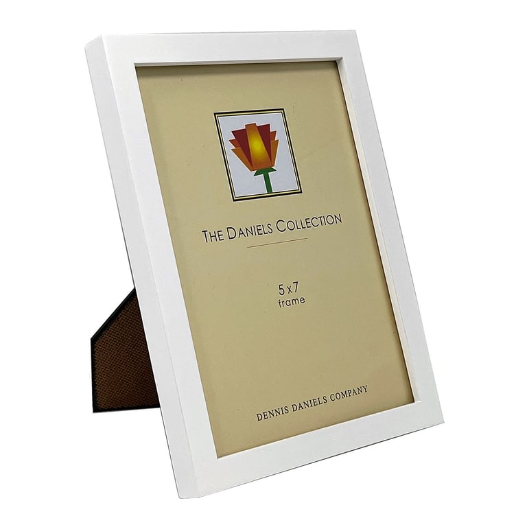 Main view Product Details Dennis Daniels® The Original DANIELS W41: Bright-White finish 5x7 frame by Dennis Daniels® — The square corner W41 style group are slim, well crafted, and favorites for gallery clients.Constructed of matched varnished hardwoods with tailed corners and exact fitting backs. Dual easel for landscape or portrait tabletop use; wall mounting hooks provided too. Glare resistant glass lens. This is a classic style at a great price. Moulding edge is ½" wide. Quality crafted by Dennis Daniels®, the beautiful frame people of California. The Original DANIELS W41: Bright-White finish 5x7 frame by Dennis Daniels® Model #80018086 List $19.50 You pay $16.95 This item is currently out of stock and we do not have an expected date at the present time. click here to be automatically notified when it comes back in stock or email merchandising@sendaframe.com for availability information. You can place this item in your shopping cart. It will be added to the 'saved for later' section. Your Price Match is Active Your request for a price of $0.00 for a minimum quantity of has been accepted. You have [time] left to purchase this item for $0.00 instead of $16.95 each. Find a Lower Price? We BEAT All Authorized Retailers [?] FEATURESDisplays:5"x7"Material:Wood (full grain)Finish:WhiteOccasion:Business & office, Home decorating, Corporate gifts, Teacher gifts, Team & coach gifts, Celebrating TravelsStyle:Classic, Contemporary, Minimal, TraditionalOrientation:BothBrand:Dennis Daniels®Display Type:Desktop or Wall Approx. Overall Dimensions:5 3/4"x7 3/4"x3/4" This item ships in its own box SHARE THIS ITEM Share on Facebook