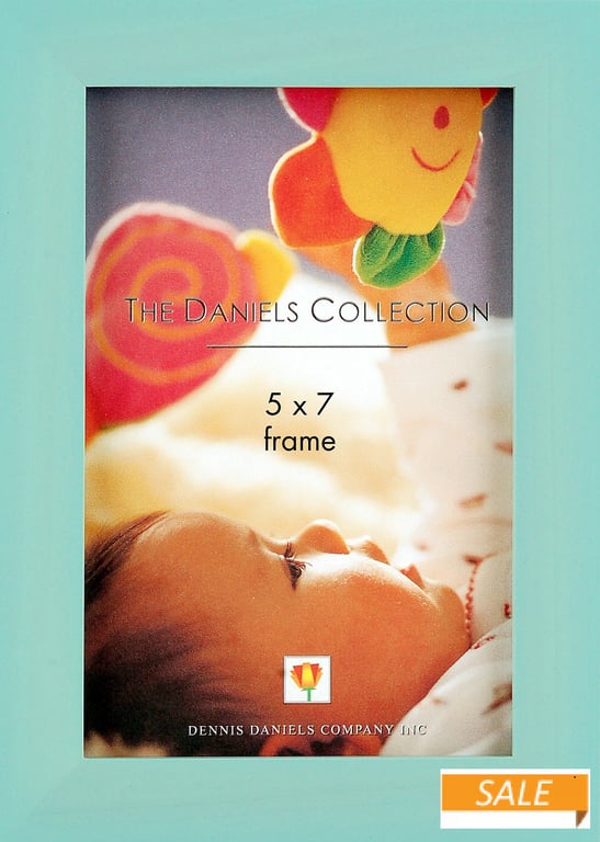 Product Details Dennis Daniels® Baby-Blue Square-Corner 5x7 frameby Dennis Daniels® — The Square Corner style group of frames are slim and well crafted. This group is a favorite for children's rooms and play areas.Constructed of matched hardwoods with pastel staining, it features tailed corners and exact fitting backs. Dual easel for landscape or portrait tabletop use; wall mounting hooks provided too. Glare resistant glass lens.Crafted by Dennis Daniels®. Baby-Blue Square-Corner 5x7 frameby Dennis Daniels® Model #80016303 List $14.50 You pay $8.90 In stock Ships next business day [?] Your Price Match is Active Your request for a price of $0.00 for a minimum quantity of has been accepted. You have [time] left to purchase this item for $0.00 instead of $8.90 each. Find a Lower Price? We BEAT All Authorized Retailers [?] FEATURESDisplays:5"x7"Material:Wood (full grain)Finish:Blue, Blue(Light)Occasion:Birthday (child), Home decorating, New baby, Romantic, Sweet 16, Teacher gifts, Thank-Motivate-Reward, Celebrating Travels, Corporate giftsStyle:Classic, RomanticOrientation:BothBrand:Dennis Daniels®Display Type:Desktop or Wall This item ships in its own box SHARE THIS ITEM Share on Facebook