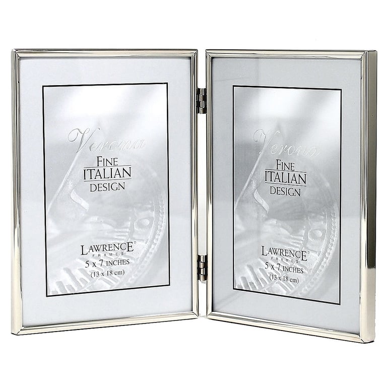 Main view Reverse Product Details Lawrence Frames® Polished SIMPLY SILVER double hinged 5x7 frame — Polished silverplate frame is a nicely crafted desk piece with invisible seams and corners.Glare resistant glass lenses. Brass hinges for smooth closing.Produced by Lawrence®. Polished SIMPLY SILVER double hinged 5x7 frame Lawrence® HOLIDAY CELEBRATION Savings: Buy More / Save More * Add this item to your cart for the full details of this promotion. Conditions may apply. Model #751148067775 List $41.00 You pay $33.95 In stock Ships next business day [?] Your Price Match is Active Your request for a price of $0.00 for a minimum quantity of has been accepted. You have [time] left to purchase this item for $0.00 instead of $33.95 each. Find a Lower Price? We BEAT All Authorized Retailers [?] FEATURESDisplays:5"x7"Material:SilverplateFinish:SilverOccasion:Anniversary, Birthday, Good luck, Mother`s Day, Retirement, Romantic, Teacher gifts, Thank-Motivate-Reward, Celebrating Travels, Wedding, Business & office, Corporate gifts, Home decorating, Team & coach giftsStyle:Classic, Minimal, Traditional, Contemporary, Sophisticated, RomanticOrientation:Vertical OnlyBrand:Lawrence Frames®Display Type:Desktop or Wall This item ships in its own box SHARE THIS ITEM Share on Facebook