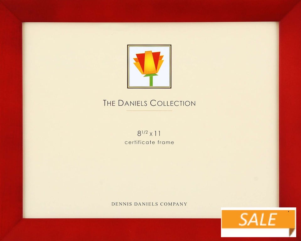 Main view Back view Product Details Dennis Daniels® Rich bevelled Rosewood stained classic 8.5x11 frame by Dennis Daniels® — Daniels' beautifully crafted certifcate frame is simple and easy to decorate with. Inward bevel adds depth to the presentation and pulls the eye to the print.Tailored corners with a beautiful furniture finish rosewood stain.Features finely fitting dual easel back for portrait or landscape tabletop display. Recessed wall mounts included for easy hanging. Glare resistant glass lens.Crafted by Dennis Daniels® of California. Rich bevelled Rosewood stained classic 8.5x11 frame by Dennis Daniels® Model #80011315 List $24.00 You pay $18.95 In stock Ships next business day [?] Your Price Match is Active Your request for a price of $0.00 for a minimum quantity of has been accepted. You have [time] left to purchase this item for $0.00 instead of $18.95 each. Find a Lower Price? We BEAT All Authorized Retailers [?] FEATURESDisplays:8.50"x11"Material:Wood (full grain)Finish:RedOccasion:Business & office, Home decorating, Corporate giftsStyle:Classic, Contemporary, TraditionalOrientation:BothBrand:Dennis Daniels®Display Type:Desktop or Wall This item ships in its own box SHARE THIS ITEM Share on Facebook
