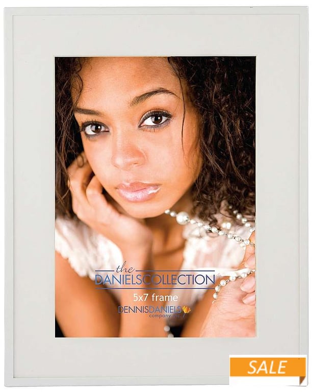 Product Details Dennis Daniels® TRIMLINE White metallic frame with white 5x7 mat by Dennis Daniels® — A fine, thin profile clean white metallic frame with hardwood back and dual easel for landscape or portrait table top display.The series offers a very nice, white acid-free coordinated mat board that displays the 5"x7" print.Glare resistant glass lens.Crafted by Dennis Daniels® of California. TRIMLINE White metallic frame with white 5x7 mat by Dennis Daniels® Model #80019496 List $19.50 You pay $16.95 In stock Ships next business day [?] Your Price Match is Active Your request for a price of $0.00 for a minimum quantity of has been accepted. You have [time] left to purchase this item for $0.00 instead of $16.95 each. Find a Lower Price? We BEAT All Authorized Retailers [?] FEATURESDisplays:5"x7"Material:Metallic (all)Finish:WhiteOccasion:Anniversary, Bar & Bat Mitzvah, Birthday, Business & office, Home decorating, Retirement, Corporate giftsStyle:Contemporary, TraditionalOrientation:BothBrand:Dennis Daniels® This item ships in its own box SHARE THIS ITEM Share on Facebook