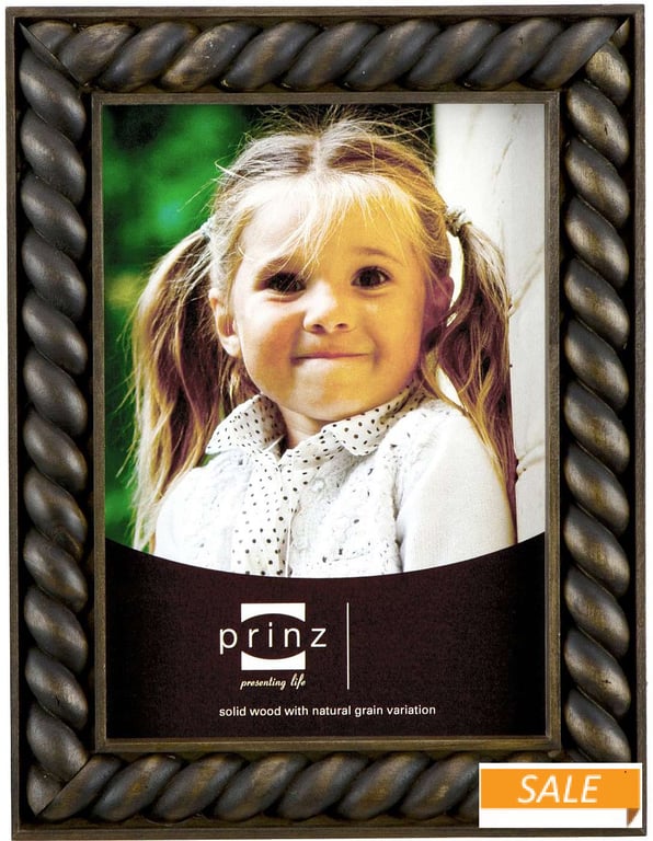 Product Details Prinz® frames & albums CAMBRIA black-stained wood frame from Prinz® — The CAMBRIA series of stained wood frames makes a wonderful presentation for your photo.A twisted rope trim adds a special design accent.Features a two-way easel for vertical or horizontal table-top display. Or, use the included hook for easy wall mounting. Glare resistant glass lens.By Prinz®. CAMBRIA black-stained wood frame from Prinz® Model #086981766753 List $22.00 You pay $10.90 In stock Ships next business day [?] Your Price Match is Active Your request for a price of $0.00 for a minimum quantity of has been accepted. You have [time] left to purchase this item for $0.00 instead of $10.90 each. Find a Lower Price? We BEAT All Authorized Retailers [?] FEATURESDisplays:5"x7"Material:Wood (full grain)Finish:BlackOccasion:Business & office, Graduation, Home decorating, Teacher gifts, Celebrating TravelsStyle:Classic, Contemporary, Rustic/Lodge, Traditional, Nautical & ShoreOrientation:BothBrand:Prinz® frames & albumsDisplay Type:Desktop or Wall This item ships in its own box SHARE THIS ITEM Share on Facebook