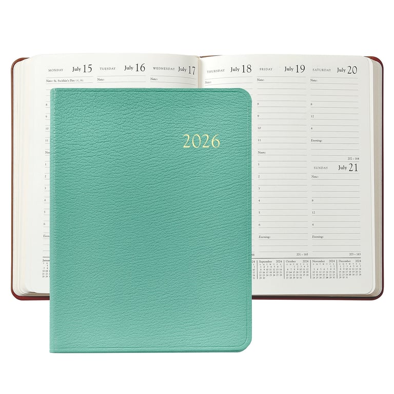 Graphic Image® 2026 Goatskin Leather 9in ROBINS-EGG-BLUE Desk Diary by Graphic Image™ —