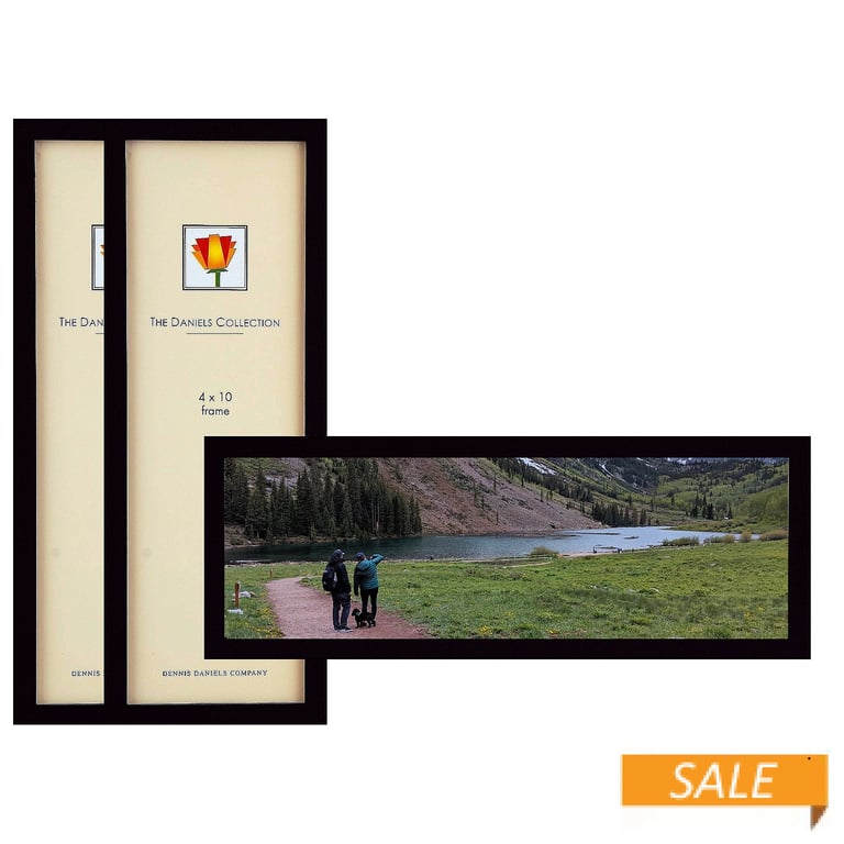 Main view Reverse (white sample) Product Details Dennis Daniels® GALLERY WOODS EBONY-BLACK finish 4x10 panoramic by Dennis Daniels® - 3pc Bundle Price — Crafted in ebony-black solid grain wood, this piece is a standout with beautiful butterfly corners and attractive hardboard back. Frame edge is a very contemporary ½" all-around.Dual easel back for vertical or horizontal table top display as well as recessed wall mounts included for easy hanging in either orientation. Swivel tab back closure. Glare resistant glass lens. Note: Item is individually priced; sold in 3's only for the bundle pricing. Quality crafted by Dennis Daniels®, the beautiful frame people of California. GALLERY WOODS EBONY-BLACK finish 4x10 panoramic by Dennis Daniels® - 3pc Bundle Price Model #782680024025 List $58.50 You pay $38.70 ( set of 3 / $12.90 ea ) In stock Ships next business day [?] Your Price Match is Active Your request for a price of $0.00 for a minimum quantity of has been accepted. You have [time] left to purchase this item for $0.00 instead of $12.90 each. Find a Lower Price? We BEAT All Authorized Retailers [?] FEATURESDisplays:4"x10"Material:Wood (full grain)Finish:BlackOccasion:Congratulations, Thank-Motivate-Reward, Business & office, Corporate gifts, Home decorating, Teacher gifts, Team & coach gifts, Celebrating TravelsStyle:Classic, Architectural, Minimal, Contemporary, TraditionalOrientation:BothBrand:Dennis Daniels®Display Type:Desktop or Wall Approx. Overall Dimensions:10 3/4"x4 3/4"x5/8" This item ships in its own box SHARE THIS ITEM Share on Facebook