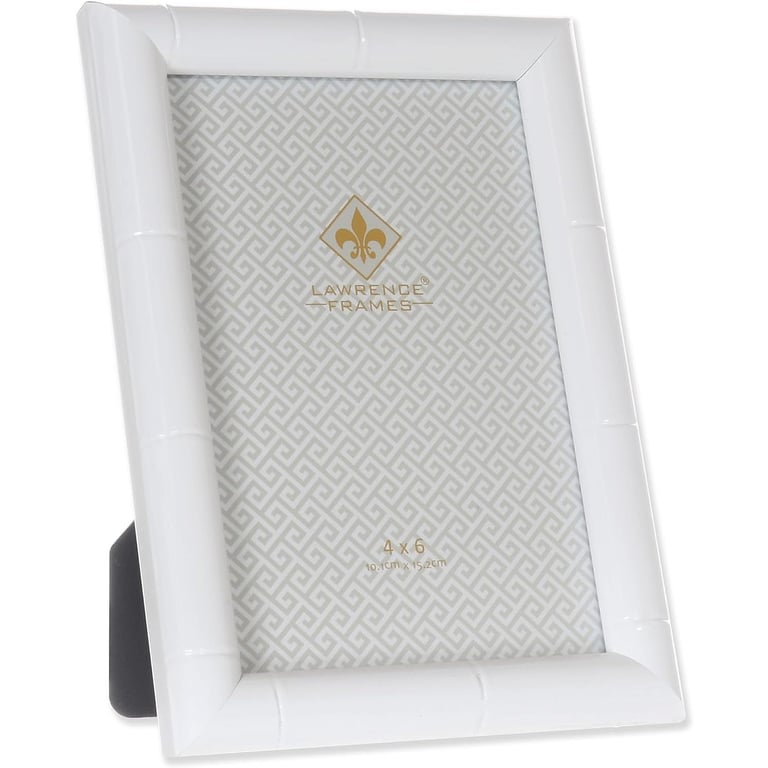 Main view Product Details Lawrence Frames® White BAMBOO Style Polystyrene 4x6 frame — Bamboo style frame is nicely crafted with handsome polystyrene material.Attractively backed for wonderful desk appeal.Dual easel back for portrait or landscape tabletop display. Wall mounts. Glare resistant glass lens.By Lawrence®. White BAMBOO Style Polystyrene 4x6 frame Model #48090797 List $14.00 You pay $10.95 This item IS in stock and can be expected to ship 11/20/2025 Your Price Match is Active Your request for a price of $0.00 for a minimum quantity of has been accepted. You have [time] left to purchase this item for $0.00 instead of $10.95 each. Find a Lower Price? We BEAT All Authorized Retailers [?] FEATURESDisplays:4"x6"Material:Acrylic | ResinFinish:WhiteOccasion:Anniversary, Birthday, Business & office, Corporate gifts, Engagement, Friendship, Good luck, Home decorating, Weekend Host Gifts, Housewarming, Mother`s Day, Retirement, Thank-Motivate-Reward, WeddingStyle:Classic, TraditionalOrientation:BothBrand:Lawrence Frames®Display Type:Desktop or Wall This item ships in its own box SHARE THIS ITEM Share on Facebook