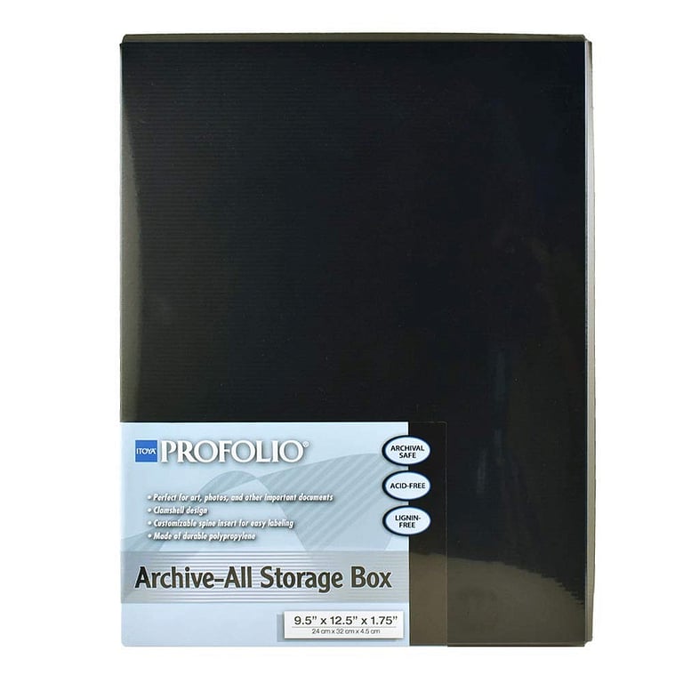 Main view Product Details Itoya Studio The Archival ALL-STORAGE 9.5x12.5x1.75 BOX by Itoya® — Suitable for the presentation and storage of photographs, digital prints, documents, etc. The Archive-All Storage Box is perfect for art, photos, documents, and other important items. Customizable spine insert for easy labeling One-piece clamshell design, it is easy to use and store. Acid-free and lignin-free for archival safe storage Produced by Itoya®. The Archival ALL-STORAGE 9.5x12.5x1.75 BOX by Itoya® Model #075633940603 List $15.00 You pay $12.95 This item can be expected to ship by 01/06/2026. Order now by clicking ADD TO CART (below); you are only charged when we actually ship. Or, Click here to be automatically notified when it comes back in stock. Your Price Match is Active Your request for a price of $0.00 for a minimum quantity of has been accepted. You have [time] left to purchase this item for $0.00 instead of $12.95 each. Find a Lower Price? We BEAT All Authorized Retailers [?] FEATURESDisplays:9.50"x12.50"Material:ClothFinish:BlackOccasion:Business & office, Craft Projects, RetirementStyle:Architectural, Contemporary, Sports & leisureBrand:Itoya StudioDisplay Type:Desktop Only SHARE THIS ITEM Share on Facebook