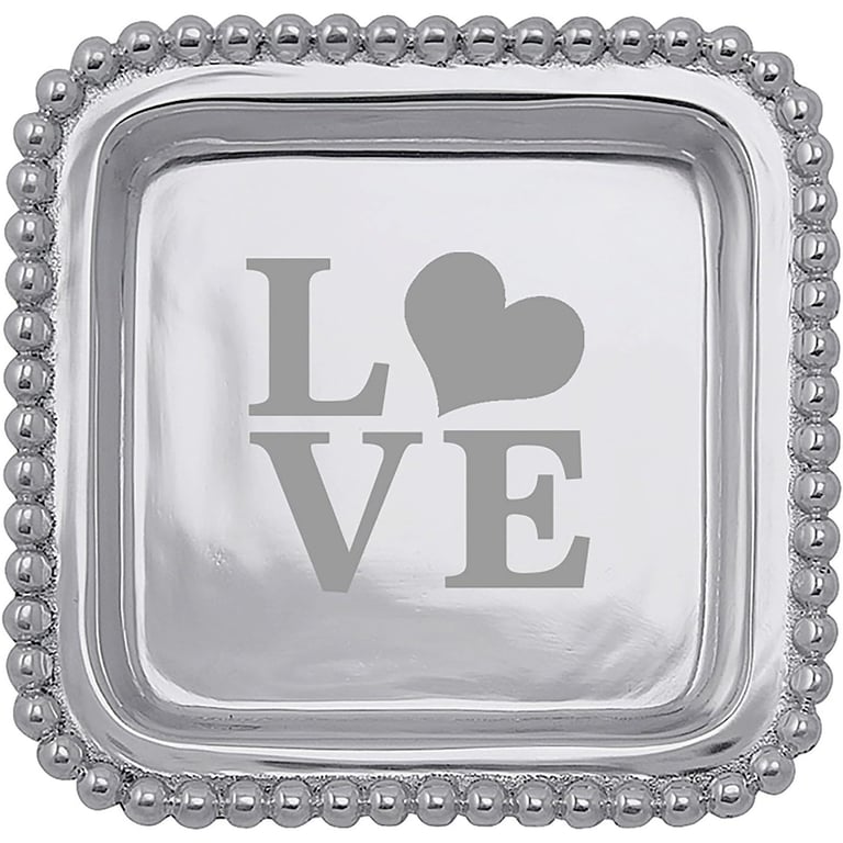 Main view Gift Packaging Product Details Mariposa® LOVE PEARLED 4in TRAY crafted by Mariposa® — Mariposa's String of Pearls collection, handcrafted from 100% recycled aluminum forms this multi-functional, elegant Canape Plate. Engraved with the expression: LOVE Material: Recycled Sandcast Aluminum Dimensions: 4¼in L x 4¼in W Important Note: Mariposa pieces are hand engraved; please expect slight differences from the photo. Shop the entire collection: click Mariposa® Design Collection LOVE PEARLED 4in TRAY crafted by Mariposa® Mariposa® FALL CELEBRATION Savings - Buy More / Save More * Add this item to your cart for the full details of this promotion. Conditions may apply. Model #808813152394 List $38.00 You pay $34.95 In stock Ships next business day [?] Your Price Match is Active Your request for a price of $0.00 for a minimum quantity of has been accepted. You have [time] left to purchase this item for $0.00 instead of $34.95 each. Find a Lower Price? We BEAT All Authorized Retailers [?] FEATURESMaterial:AluminumFinish:SilverOccasion:Anniversary, Engagement, Romantic, Valentine`s Day, WeddingStyle:Contemporary, Eco-Friendly-Recycled, Modern, Santa Fe, Shabby Chic, Sports & leisure, Words & whimsy, Expressions > ready madeBrand:Mariposa®Display Type:not applicable n/a Approx. Overall Dimensions:4 1/4"x4 1/4" This item ships in its own box SHARE THIS ITEM Share on Facebook