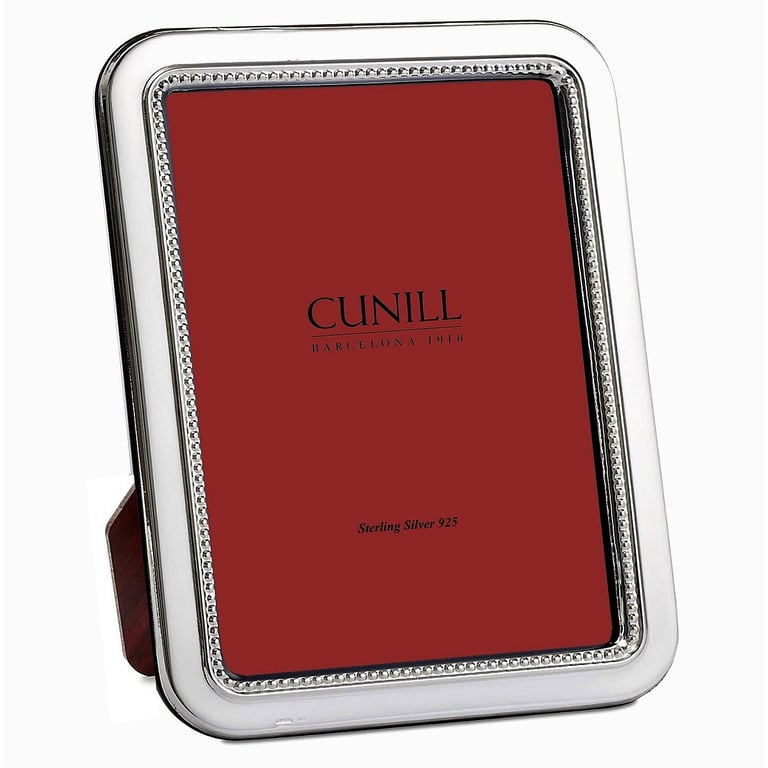 Main view sample back Product Details Cunill® Italia BEADED ROUND CORNERS Fine Sterling Silver 5x7 Frame by Cunill® — BEADED ROUND CORNERS is a beautiful sterling silver style, even to the backing which is a fitted wood piece to easily lock-in your photos. (see Item views for more images). The Cunill quality is unsurpassed. Each piece is crafted from a single sheet of fine sterling silver. Every inch is turned polished and inspected. Even the backing is a fitted wood piece to easily lock-in your photos. Note the signature sterling lozenge latches - a hallmark of Cunill since 1916. Each piece is debossed on front with the family mark and .925 (sterling silver), proudly giving signature to the quality this 100+ year old company has earned. Cunill sterling never needs polishing - it is finely lacquered to keep it tarnish free. Beautifully gift packaged in the signature Cunill® 2-piece red box.Crafted in - and imported from - Cunill Italy. Click complete Cunill® frame collection. BEADED ROUND CORNERS Fine Sterling Silver 5x7 Frame by Cunill® Model #852661241304 List $210.00 You pay $146.95 In stock Can be shipped today [?] Your Price Match is Active Your request for a price of $0.00 for a minimum quantity of has been accepted. You have [time] left to purchase this item for $0.00 instead of $146.95 each. Find a Lower Price? We BEAT All Authorized Retailers [?] FEATURESDisplays:5"x7"Material:Sterling Silver (fine)Finish:SilverOccasion:Anniversary, Birthday, Business & office, Corporate gifts, Engagement, Graduation, Retirement, Wedding, Employee honorsStyle:Minimal, Sophisticated, Traditional, Heirloom / Heritage, GlamOrientation:BothBrand:Cunill® ItaliaDisplay Type:Desktop Only This item ships in its own box SHARE THIS ITEM Share on Facebook