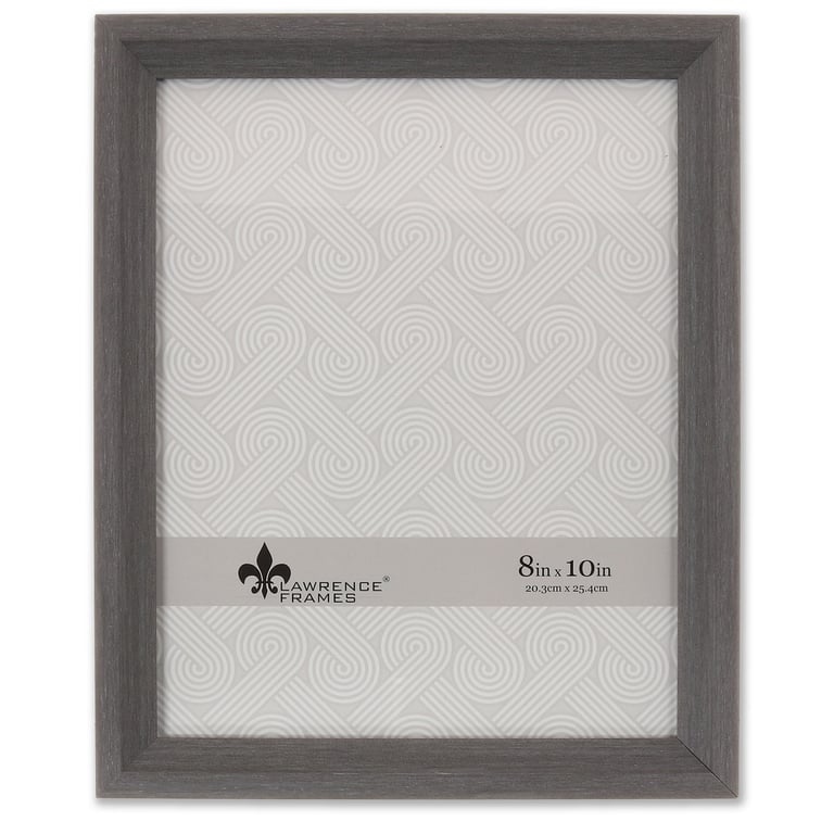 Main view Product Details Lawrence Frames® BRADLEY GRAY 8x10 frame — Weathered gray composite picture frame. Casual textured finish. Includes a two-way easel for table top and wall hangers - for vertical or horizontal display. Quality black velvet backing. Frame includes glass to protect your photo. Individually boxed. By Lawrence Frames®, crafting fine frames for generations. BRADLEY GRAY 8x10 frame Model #751148082518 List $23.00 You pay $17.95 This item IS in stock and can be expected to ship 02/04/2026 Your Price Match is Active Your request for a price of $0.00 for a minimum quantity of has been accepted. You have [time] left to purchase this item for $0.00 instead of $17.95 each. Find a Lower Price? We BEAT All Authorized Retailers [?] FEATURESDisplays:8"x10"Material:Wood (mdf/engineered)Finish:Gray/CharcoalOccasion:Business & office, Home decorating, Housewarming, Weekend Host GiftsStyle:Antique, Distressed - Weathered, Rustic/Lodge, CoastalOrientation:BothBrand:Lawrence Frames®Display Type:Desktop or Wall Approx. Overall Dimensions:9"x11"x1 1/8" This item ships in its own box SHARE THIS ITEM Share on Facebook