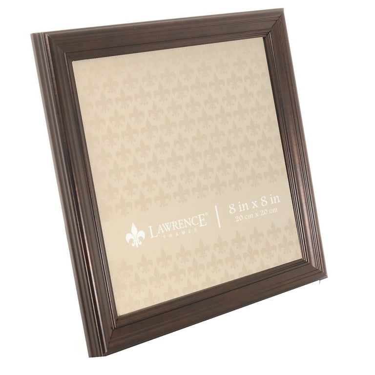 Main view Product Details Lawrence Frames® Burnished Bronze Ridged 8x8 frame — High quality burnished bronze composite picture frame Decorative picture frame Black velvet backing Tabletop display or can be hung on a wall with installed hangers Glare resistant glass lens Wipe clean with dry cloth, glass included Produced by Lawrence Frames®. Burnished Bronze Ridged 8x8 frame Lawrence® HOLIDAY CELEBRATION Savings: Buy More / Save More * Add this item to your cart for the full details of this promotion. Conditions may apply. Model #751148083256 List $22.50 You pay $18.95 This item IS in stock and can be expected to ship 12/31/2025 Your Price Match is Active Your request for a price of $0.00 for a minimum quantity of has been accepted. You have [time] left to purchase this item for $0.00 instead of $18.95 each. Find a Lower Price? We BEAT All Authorized Retailers [?] FEATURESDisplays:8"x8"Material:Wood (mdf/engineered)Finish:BronzeOccasion:Business & office, Home decoratingStyle:Classic, TraditionalBrand:Lawrence Frames®Display Type:Desktop or Wall Approx. Overall Dimensions:9 11/16"x9 11/16"x1" This item ships in its own box SHARE THIS ITEM Share on Facebook