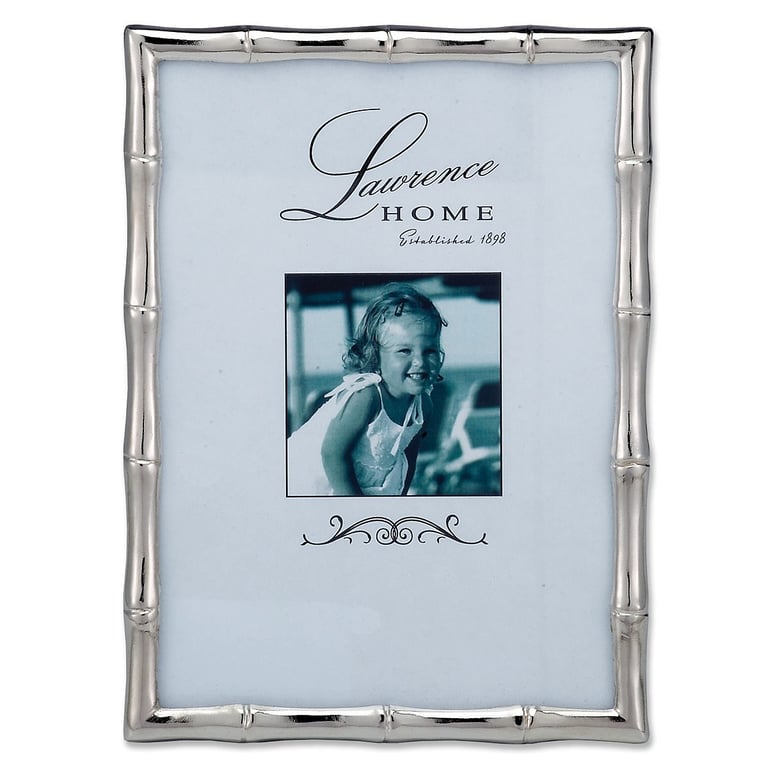 Main view Product Details Lawrence Frames® Silverplate BAMBOO 5x7 by Lawrence® — Silver plate frame is nicely crafted in a classic bamboo style..Attractively backed for wonderful desk appeal.Dual easel back for portrait or landscape tabletop display. Glare resistant glass lens.By Lawrence®. Silverplate BAMBOO 5x7 by Lawrence® Lawrence® HOLIDAY CELEBRATION Savings: Buy More / Save More * Add this item to your cart for the full details of this promotion. Conditions may apply. Model #751148066181 List $29.00 You pay $21.95 In stock Can be shipped today [?] Your Price Match is Active Your request for a price of $0.00 for a minimum quantity of has been accepted. You have [time] left to purchase this item for $0.00 instead of $21.95 each. Find a Lower Price? We BEAT All Authorized Retailers [?] FEATURESDisplays:5"x7"Material:SilverplateFinish:SilverOccasion:Anniversary, Birthday, Business & office, Corporate gifts, Engagement, Friendship, Good luck, Home decorating, Weekend Host Gifts, Housewarming, Mother`s Day, Retirement, Thank-Motivate-Reward, WeddingStyle:Asian Zen, Classic, TraditionalOrientation:BothBrand:Lawrence Frames®Display Type:Desktop or Wall This item ships in its own box SHARE THIS ITEM Share on Facebook