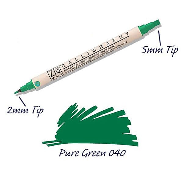 Product Details Itoya Studio The Memory System Calligraphy Pen - PURE GREEN - by ZIG Kuretake® — ZIG CALLIGRAPHY pens are a water-based pigment, dual tipped pen, great for beginners. Square tips are ideal for both right and left handed users. Easy to use for beginner to professional. Pen has 2 tips: 2.0mm and 5.0mm Excellent marker for calligraphy and drawings Acid-free and photo safe Odorless By Kuretake ZIG® - famous for calligraphy markers Sold in 6s. By ZIG Kuretake® The Memory System Calligraphy Pen - PURE GREEN - by ZIG Kuretake® Model #847340002413 List $27.00 You pay $20.94 ( set of 6 / $3.49 ea ) In stock Ships next business day [?] Your Price Match is Active Your request for a price of $0.00 for a minimum quantity of has been accepted. You have [time] left to purchase this item for $0.00 instead of $3.49 each. Find a Lower Price? We BEAT All Authorized Retailers [?] FEATURESMaterial:Archival | Photo-SafeFinish:GreenOccasion:Craft ProjectsStyle:Travel ReadyBrand:Itoya StudioDisplay Type:not applicable n/a This item ships in its own box SHARE THIS ITEM Share on Facebook