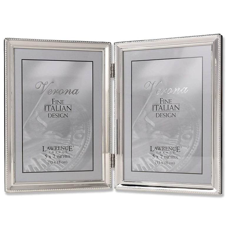 Main view Product Details Lawrence Frames® Silver-plated 5x7 double w/caviar bead trim — This polished silver plate frame is nicely crafted with invisible seams and corners.Attractively backed for wonderful desk appeal. Or, use the wall mounts for easy hanging.Glare resistant glass lens. Brass hinges for smooth closing.By Lawrence®. Click the Lawrence Frame collection to shop the entire line. Silver-plated 5x7 double w/caviar bead trim Model #751148060776 List $40.00 You pay $29.95 In stock Can be shipped today [?] Your Price Match is Active Your request for a price of $0.00 for a minimum quantity of has been accepted. You have [time] left to purchase this item for $0.00 instead of $29.95 each. Find a Lower Price? We BEAT All Authorized Retailers [?] FEATURESDisplays:5"x7"Material:SilverplateFinish:SilverOccasion:Anniversary, Birthday, Good luck, Retirement, Romantic, WeddingStyle:Classic, Traditional, RomanticOrientation:Vertical OnlyBrand:Lawrence Frames®Display Type:Desktop or Wall This item ships in its own box SHARE THIS ITEM Share on Facebook