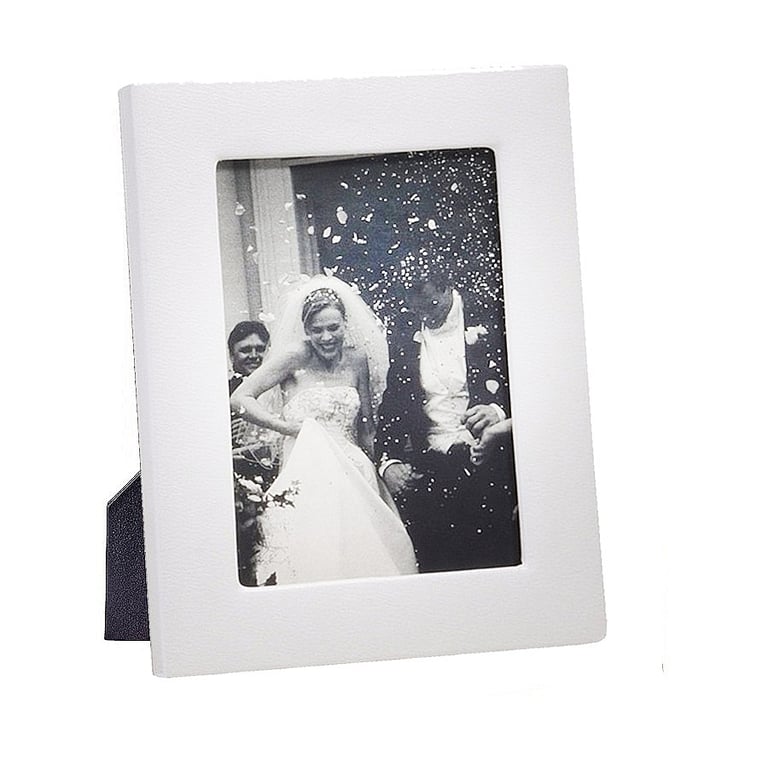 Main view Storage / Gift Box (sample) Product Details Graphic Image® Traditional White Leather STUDIO Frame by Graphic Image™ — A superb bench-crafted frame of superior calfskin leather for a luxe gift for someone special - or yourself. Crafted in white, pebble-grain nappa leather Wrapped in leather on both sides Sturdy metal easel to display vertical or horizontal photos Features a convenient drop-down rear door for easy and frequent access to photo Personalization is available Graphic Image™ hand-crafts genuine leather-bound frames, books, and personal accessories in their New York workshops since 1969. Traditional White Leather STUDIO Frame by Graphic Image™ Model #611959699018 $129.95 1 available to ship, more on the way. In stock Ships next business day [?] Your Price Match is Active Your request for a price of $0.00 for a minimum quantity of has been accepted. You have [time] left to purchase this item for $0.00 instead of $129.95 each. Find a Lower Price? We BEAT All Authorized Retailers [?] FEATURESDisplays:5"x7"Material:Leather (fine)Finish:WhiteOccasion:Anniversary, Easter, Engagement, WeddingStyle:Classic, Romantic, Traditional, ContemporaryOrientation:BothBrand:Graphic Image®Display Type:Desktop Only This item ships in its own box SHARE THIS ITEM Share on Facebook