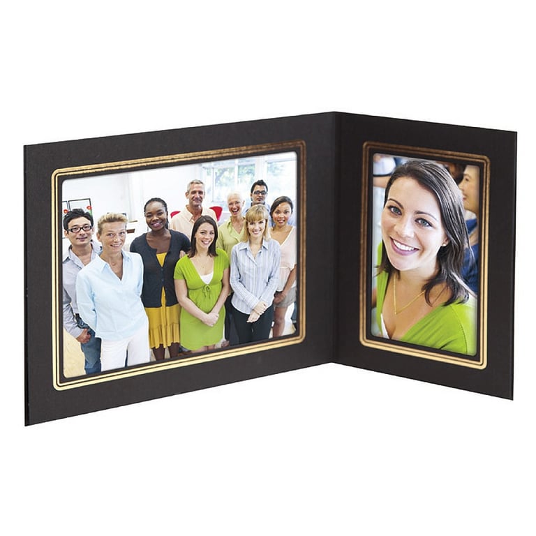 TAP™ SYCAMORE Mixed Double 7x5/3½x5 MEMORY MATES Black cardstock double photo frame / gold border (sold in 10's) —