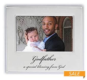 Product Details Prinz® frames & albums SACRED MOMENT series Silver GODFATHER frame by Prinz® — Celebrate your godfather's bond with our 6" x 4" Prinz® picture frame. The front of this frame reads: Godfather a special blessing from God Frame features: metal frame matte silver finish velvet back one-way easel for table-top display wall hanger Produced by Prinz®, maker of fine albums for generations. SACRED MOMENT series Silver GODFATHER frame by Prinz® Model #81756303 List $15.95 You pay $7.90 In stock Can be shipped today [?] Your Price Match is Active Your request for a price of $0.00 for a minimum quantity of has been accepted. You have [time] left to purchase this item for $0.00 instead of $7.90 each. Find a Lower Price? We BEAT All Authorized Retailers [?] FEATURESDisplays:6"x4"Material:Metallic (all)Finish:SilverOccasion:Birthday, Christmas, InspirationalStyle:Classic, Contemporary, Sophisticated, Words & whimsy, Expressions > ready madeOrientation:Horizontal OnlyBrand:Prinz® frames & albumsDisplay Type:Desktop or Wall This item ships in its own box SHARE THIS ITEM Share on Facebook