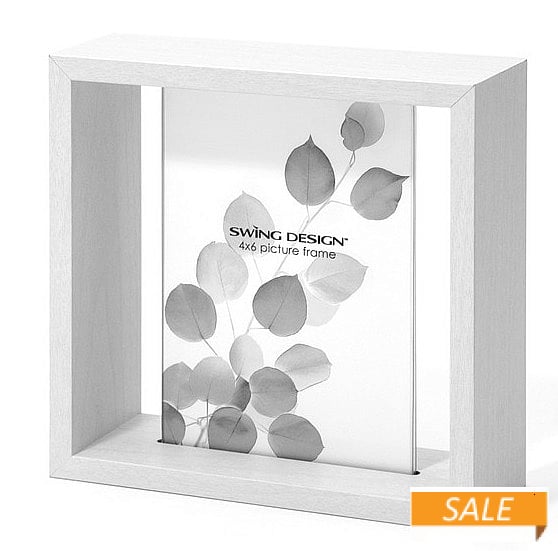 Product Details Swing Design® The Original ELEMENT White Oak 4x6 float frame by Swing Design® — The unique construction of the Element Frames create an illusion of the picture "floating" inside the frame. This versatile frame can be displayed on a tabletop in both horizontal or vertical orientation, or displayed vertically on a wall. It is beautifully finished exactly the same on both sides. Produced by Swing Design®. The Original ELEMENT White Oak 4x6 float frame by Swing Design® Model #665788870209 List $20.00 You pay $10.90 In stock Ships next business day [?] Your Price Match is Active Your request for a price of $0.00 for a minimum quantity of has been accepted. You have [time] left to purchase this item for $0.00 instead of $10.90 each. Find a Lower Price? We BEAT All Authorized Retailers [?] FEATURESDisplays:4"x6"Material:Wood (full grain)Finish:WhiteOccasion:Anniversary, Birthday, Business & office, Christmas, Congratulations, Friendship, Home decorating, Housewarming, Teacher gifts, Team & coach gifts, Celebrating TravelsStyle:Contemporary, SophisticatedOrientation:BothBrand:Swing Design®Display Type:Desktop or Wall Approx. Overall Dimensions:6 1/2"x6 1/2"x2 1/2" This item ships in its own box SHARE THIS ITEM Share on Facebook