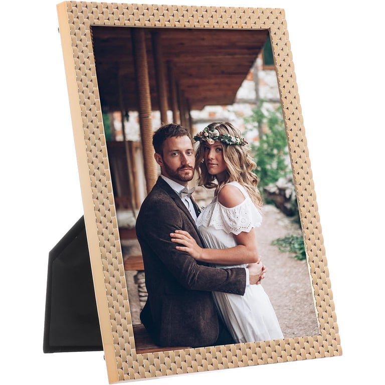 Classic, beautifully crafted metallic frame. Frame features an elegant "link" bracelet style border.