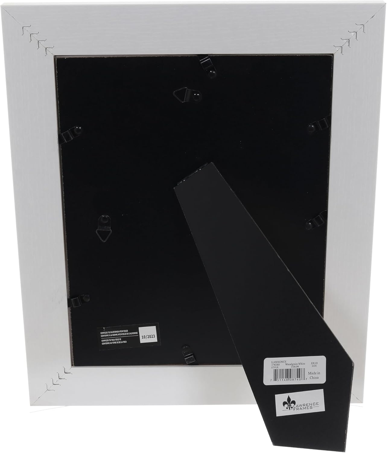 Main view Product Details Lawrence Frames® COLUMBUS WHITE 8x10 frame with Grooves — Weathered white composite picture frame. Casual textured finish. Includes a two-way easel for table top and wall hangers - for vertical or horizontal display. Frame includes glass to protect your photo. Individually boxed. By Lawrence® COLUMBUS WHITE 8x10 frame with Grooves Model #48087407 List $21.00 You pay $17.95 This item IS in stock and can be expected to ship 11/17/2025 Your Price Match is Active Your request for a price of $0.00 for a minimum quantity of has been accepted. You have [time] left to purchase this item for $0.00 instead of $17.95 each. Find a Lower Price? We BEAT All Authorized Retailers [?] FEATURESDisplays:8"x10"Material:Wood (mdf/engineered)Finish:WhiteOccasion:Business & office, Home decorating, Teacher gifts, Team & coach giftsStyle:Distressed - Weathered, Rustic/LodgeOrientation:BothBrand:Lawrence Frames®Display Type:Desktop or Wall Approx. Overall Dimensions:10 7/8"x12 7/8"x1/2" This item ships in its own box SHARE THIS ITEM Share on Facebook