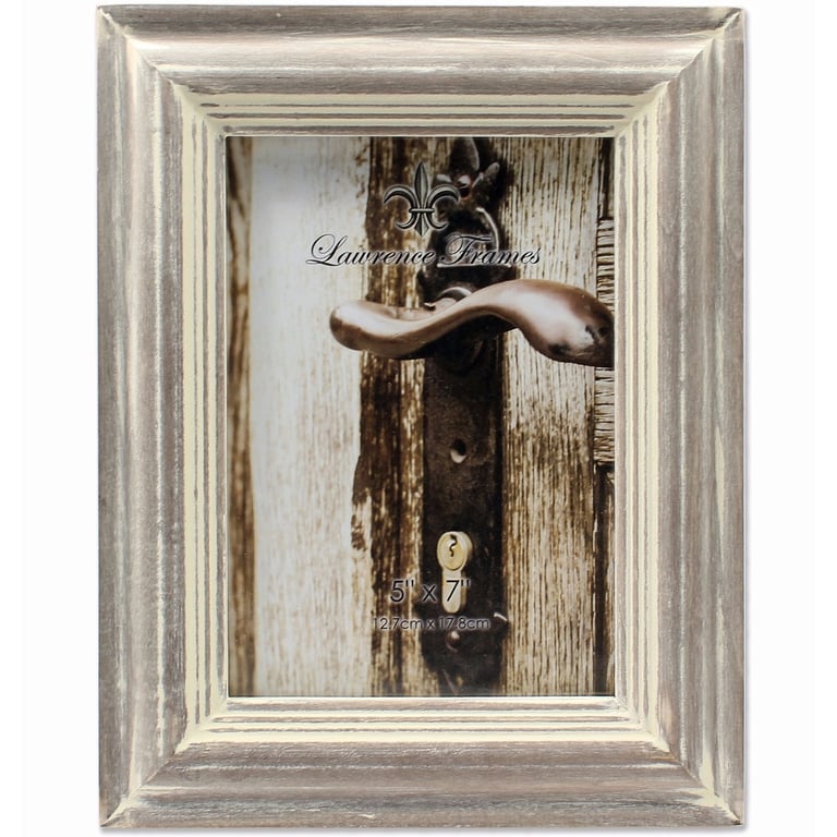 Main view Angled Reverse Product Details Lawrence Frames® SUNWASHED GRAY 5x7 frame by Lawrence® — A quality, traditional distressed gray olivewood frame with nice carved profile. Display your print or photo vertically or horizontally with dual back easel - or with included wall mount. Glare resistant glass lens; quality composite hardboard backing. By Lawrence® SUNWASHED GRAY 5x7 frame by Lawrence® Model #751148069571 List $18.00 You pay $12.95 This item IS in stock and can be expected to ship 11/26/2025 Your Price Match is Active Your request for a price of $0.00 for a minimum quantity of has been accepted. You have [time] left to purchase this item for $0.00 instead of $12.95 each. Find a Lower Price? We BEAT All Authorized Retailers [?] Approx. Overall Dimensions:6 5/8"x8 5/8"x7/8" This item ships in its own box SHARE THIS ITEM Share on Facebook