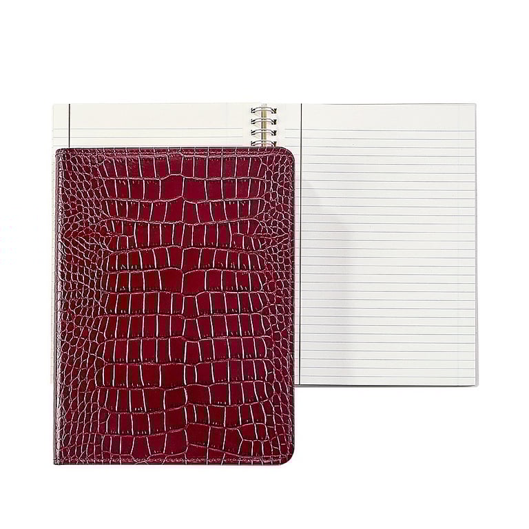 Main view Storage Gift Box (sample) Product Details Graphic Image® SPIRAL JOURNAL 9in RUBY CROCO-PRINT Fine Leather by Graphic Image™ — The leather notebook that quickly becomes a writer's constant companion. This leather notebook includes a spiral insert with 144 lined perforated pages on gold-gilded premium paper. Handy for everyday note taking, business or journal writing. Genuine full-grain Croco-Print luxe leather for superior wear Size: 7x9¼" Available in many colors (see links below). Personalization is available in gold or blind stamping For additional refills, see ACCESSORIES below Graphic Image™ hand crafts genuine leather-bound books that have set the modern day standard for quality and design. SPIRAL JOURNAL 9in RUBY CROCO-PRINT Fine Leather by Graphic Image™ Graphic Image® HOLIDAY CELEBRATION Savings - ends Sunday: Buy More / Save More * Add this item to your cart for the full details of this promotion. Conditions may apply. Model #611959738137 List $175.00 You pay $154.95 This item is no longer available. This popular style was discontinued by the manufacturer as of 05/2022 For suggestions of replacements, see related product links (below) or email service@sendaframe.com. Your Price Match is Active Your request for a price of $0.00 for a minimum quantity of has been accepted. You have [time] left to purchase this item for $0.00 instead of $154.95 each. Find a Lower Price? We BEAT All Authorized Retailers [?] FEATURESDisplays:7"x9"Material:Leather (fine)Finish:RedOccasion:Business & office, Corporate gifts, Employee honors, Good luck, Graduation, Inspirational, Thank-Motivate-Reward, Back to School, Valentine`s DayStyle:Classic, Preppy, Traditional, ContemporaryBrand:Graphic Image®Display Type:not applicable n/a Approx. Overall Dimensions:7"x9 1/4" This item ships in its own box SHARE THIS ITEM Share on Facebook