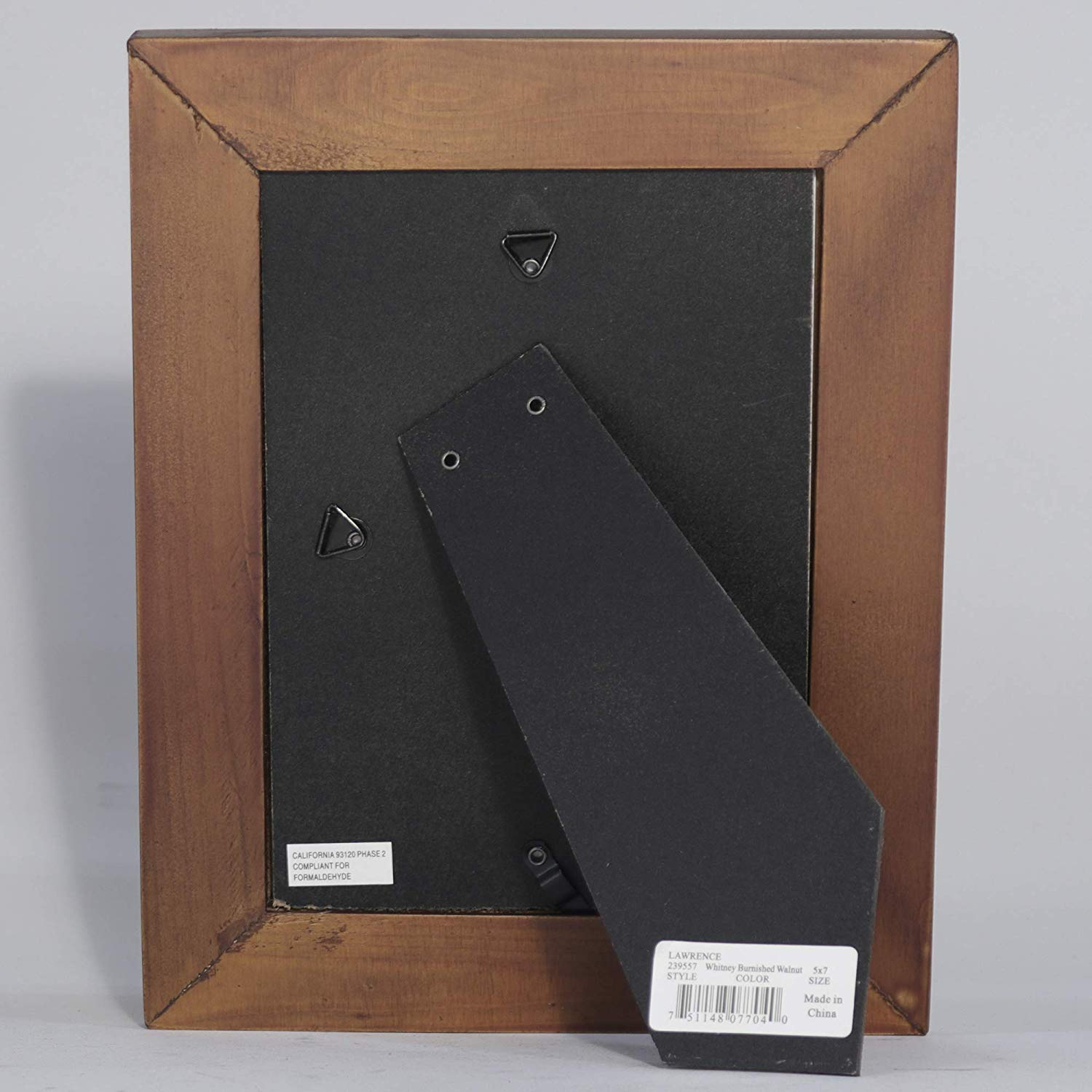 Main view Product Details Lawrence Frames® Weathered WHITNEY Brown 5x7 Frame by Lawrence® — Designer wood picture frame has a casual decorative look. High quality black backing. Frame can stand vertically or horizontally and comes with hangers for horizontal or vertical wall mounting. Individually boxed. High quality solid wood frame that will compliment any décor Easy load backing makes inserting photo quick and simple Rich beautiful wood grain finish Comes with glass front to protect your photo Crafted by Lawrence®. Weathered WHITNEY Brown 5x7 Frame by Lawrence® Model #48077040 List $10.95 You pay $4.90 This item is no longer available. This popular style was discontinued by the manufacturer as of 03/2024 For suggestions of replacements, see related product links (below) or email service@sendaframe.com. Your Price Match is Active Your request for a price of $0.00 for a minimum quantity of has been accepted. You have [time] left to purchase this item for $0.00 instead of $4.90 each. Find a Lower Price? We BEAT All Authorized Retailers [?] FEATURESDisplays:5"x7"Material:Wood (full grain)Finish:BrownOccasion:Craft Projects, Home decoratingStyle:Rustic/Lodge, Shabby Chic, Tropical, Distressed - Weathered, Coastal, Nautical & ShoreOrientation:BothBrand:Lawrence Frames®Display Type:Desktop or Wall This item ships in its own box SHARE THIS ITEM Share on Facebook
