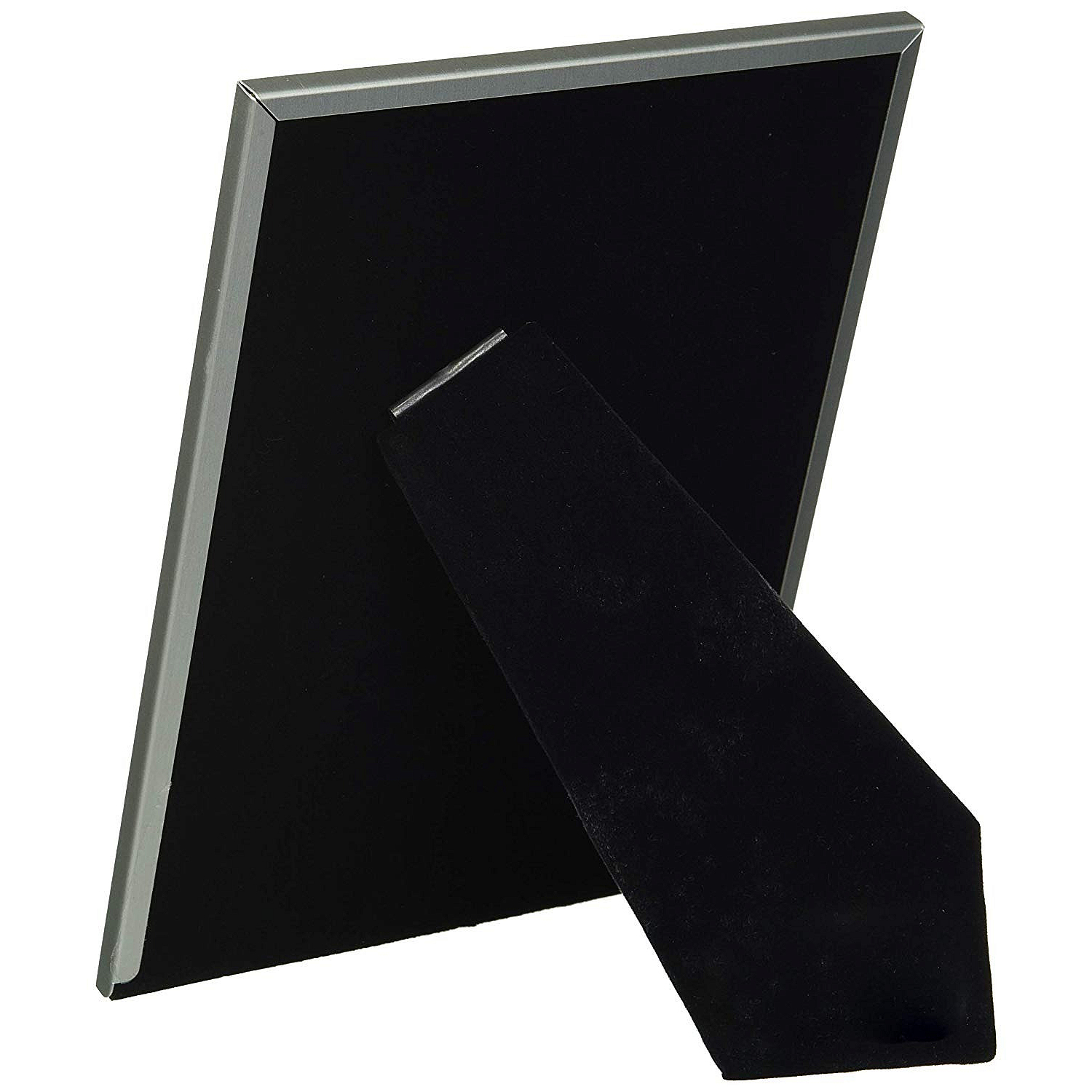 The attractive hardboard back features a dual easel for either portrait or landscape secure tabletop display. Glare resistant glass lens.