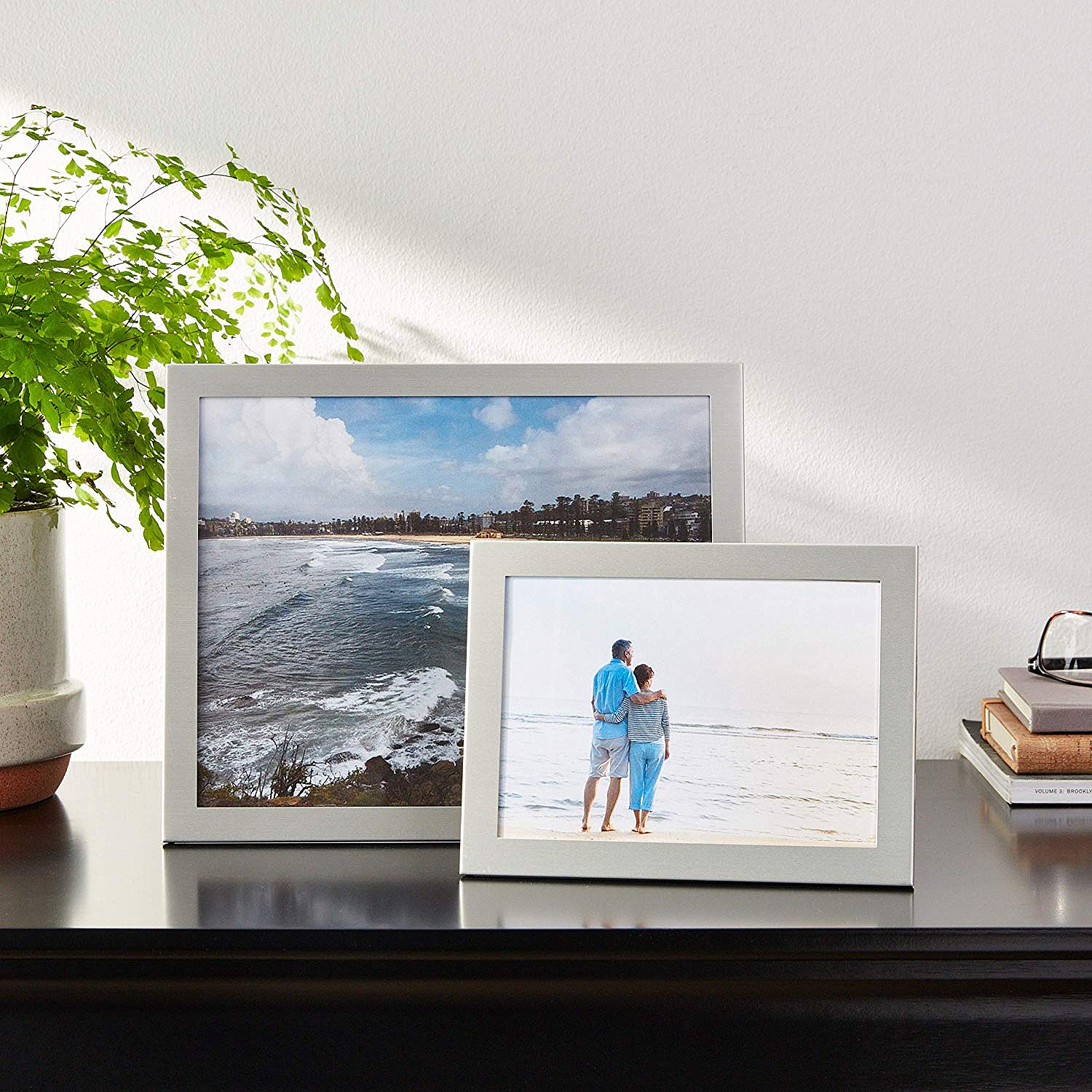 This simple brushed aluminum frame is great for personalizing - or leave in its simplicity to showcase the photo.