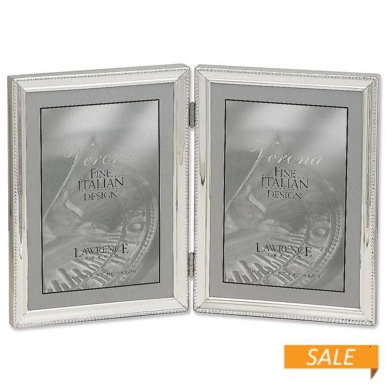Main view Product Details Lawrence Frames® Silverplated hinged 4x6 double w/caviar bead trim — Our polished silver plate frame is nicely crafted with invisible seams and corners.Attractively backed for wonderful desk appeal.Glare resistant glass lens. Brass hinges for smooth closing.By Lawrence®. Click the Lawrence Frame collection to shop the entire line. Silverplated hinged 4x6 double w/caviar bead trim Model #751148060721 List $35.00 You pay $19.90 In stock Can be shipped today [?] Your Price Match is Active Your request for a price of $0.00 for a minimum quantity of has been accepted. You have [time] left to purchase this item for $0.00 instead of $19.90 each. Find a Lower Price? We BEAT All Authorized Retailers [?] FEATURESDisplays:4"x6"Material:SilverplateFinish:SilverOccasion:Anniversary, Birthday, Good luck, Retirement, Romantic, WeddingStyle:Classic, Traditional, RomanticOrientation:Vertical OnlyBrand:Lawrence Frames®Display Type:Desktop or Wall This item ships in its own box SHARE THIS ITEM Share on Facebook