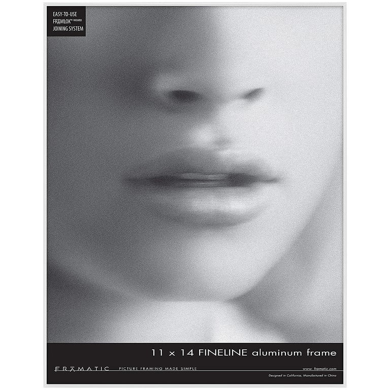 Main view Reverse (sample) Framelok System Product Details Framatic FINELINE White Aluminum 11x14 by Framatic® — Use the Framatics® FINELINE series for flattering, minimal, contemporary presentation of your art or prints. Thin aluminum frame is an elegant way to display photos and artwork White finish Patented 'FRAMLOK' assembly system allows you to easily insert photo or artwork Polished edge glass Includes an adjustable hanger for either vertical or horizontal wall display Crafted by FRAMATIC®. FINELINE White Aluminum 11x14 by Framatic® Model #716242006136 List $47.00 You pay $40.95 This item IS in stock and can be expected to ship 01/23/2026 In stock Your Price Match is Active Your request for a price of $0.00 for a minimum quantity of has been accepted. You have [time] left to purchase this item for $0.00 instead of $40.95 each. Find a Lower Price? We BEAT All Authorized Retailers [?] FEATURESDisplays:11"x14"Material:AluminumFinish:WhiteOccasion:Business & office, Graduation, Home decorating, Thank-Motivate-Reward, WeddingStyle:Architectural, Contemporary, MinimalOrientation:BothBrand:FramaticDisplay Type:Wall Only This item ships in its own box SHARE THIS ITEM Share on Facebook