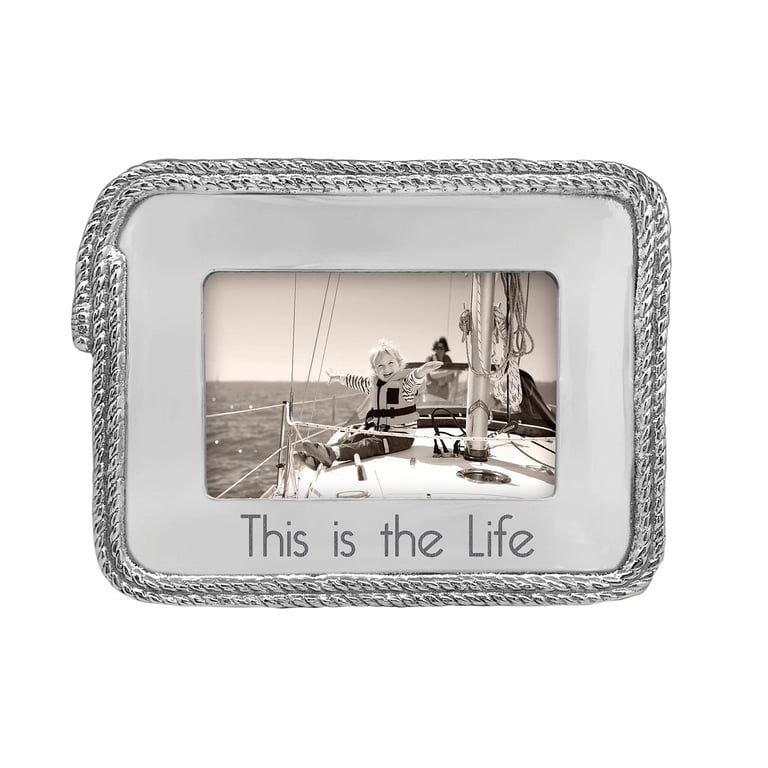 Main view Gift Box (sample) Product Details Mariposa® THIS IS THE LIFE Statement 6x4 Frame by Mariposa® — Our THIS IS THE LIFE Rope 6x4 Statement Frame has a unique woven rope which borders the frame and adds texture. Handcrafted from 100% recycled aluminum. SendAFrame stocks the entire Mariposa® picture frame collection. Shop the entire collection: Mariposa® Design Collection Important Note: Mariposa items are hand engraved. Your piece may differ slightly from the photo. THIS IS THE LIFE Statement 6x4 Frame by Mariposa® Mariposa® HOLIDAY CELEBRATION Savings - Buy More / Save More * Add this item to your cart for the full details of this promotion. Conditions may apply. Model #808813185491 $84.00 only 1 left, order soon. In stock Can be shipped today [?] Your Price Match is Active Your request for a price of $0.00 for a minimum quantity of has been accepted. You have [time] left to purchase this item for $0.00 instead of $84.00 each. Find a Lower Price? We BEAT All Authorized Retailers [?] FEATURESDisplays:4"x6"Material:AluminumFinish:SilverOccasion:Birthday, Thanksgiving, Home decorating, Inspirational, Thank-Motivate-RewardStyle:Contemporary, Eco-Friendly-Recycled, Nautical & Shore, Santa Fe, Sophisticated, Sports & leisure, Words & whimsy, Sentiments | ready made, BohoBrand:Mariposa®Display Type:Desktop Only This item ships in its own box SHARE THIS ITEM Share on Facebook