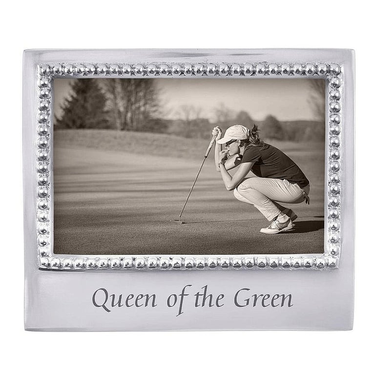 Main view Product Details Mariposa® QUEEN OF THE GREEN 6x4 Statement frame by Mariposa® — The QUEEN OF THE GREEN Statement frame for 6"x4" prints. Showcase your favorite day on the golf course or gift to your favorite golfer. The Queen of the Green Beaded 4x6 frame is handcrafted from 100% recycled, buffed-until-brilliant aluminum. Beautifully boxed in a Mariposa Gift Box Shop the entire collection: Mariposa® Design Collection Important Note: Mariposa items are hand engraved. Your piece may differ slightly from the photo. QUEEN OF THE GREEN 6x4 Statement frame by Mariposa® Mariposa® WINTER CELEBRATION Savings - Buy More / Save More * Add this item to your cart for the full details of this promotion. Conditions may apply. Model #808813192024 List $56.00 You pay $46.95 In stock Can be shipped today [?] Your Price Match is Active Your request for a price of $0.00 for a minimum quantity of has been accepted. You have [time] left to purchase this item for $0.00 instead of $46.95 each. Find a Lower Price? We BEAT All Authorized Retailers [?] FEATURESDisplays:4"x6"Material:AluminumFinish:SilverOccasion:Birthday, Celebrating Travels, Congratulations, Corporate gifts, Friendship, Good luck, Mother`s Day, Retirement, Thank-Motivate-Reward, Weekend Host GiftsStyle:Contemporary, Eco-Friendly-Recycled, Sentiments | ready made, Modern, Santa Fe, Sophisticated, Sports & leisure, Words & whimsyOrientation:Horizontal OnlyBrand:Mariposa®Display Type:Desktop Only Approx. Overall Dimensions:6 3/4"x5 3/4"x1" This item ships in its own box SHARE THIS ITEM Share on Facebook