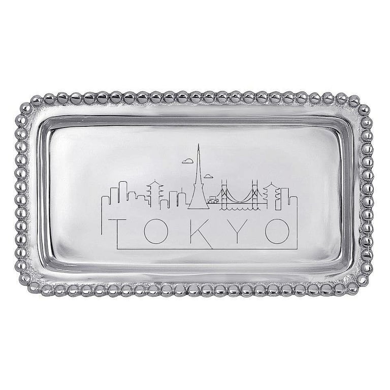 Main view Product Details Mariposa® The TOKYO CITYSCAPE BEADED 7in BUFFET TRAY crafted by Mariposa® — The BEADED BUFFET TRAY with a CITYSCAPES special TOKYO hand engraving. Perfectly sized to fit a check, making this a great way to jazz up a monetary gift. Important Note: Mariposa items are hand engraved. Your piece may differ slightly from the photo. We stock ALL the Mariposa Cityscape styles. Click here to goto a directory of cities. Want to order cityscape on another Mariposa style? Ask our customer service LIVE CHAT rep for assistance. We can get special orders from Mariposa in 2-3 days. FeaturesImportant Note: Mariposa items are hand engraved. Your piece may differ slightly from the photo. The TOKYO CITYSCAPE BEADED 7in BUFFET TRAY crafted by Mariposa® Mariposa® FALL CELEBRATION Savings - Buy More / Save More * Add this item to your cart for the full details of this promotion. Conditions may apply. Model #8088137794611 $38.95 This item is currently out of stock and we do not have an expected date at the present time. click here to be automatically notified when it comes back in stock or email merchandising@sendaframe.com for availability information. You can place this item in your shopping cart. It will be added to the 'saved for later' section. Your Price Match is Active Your request for a price of $0.00 for a minimum quantity of has been accepted. You have [time] left to purchase this item for $0.00 instead of $38.95 each. Find a Lower Price? We BEAT All Authorized Retailers [?] FEATURESMaterial:AluminumFinish:SilverOccasion:Birthday, Congratulations, Corporate gifts, Employee honors, Group Events + Parties, Friendship, Inspirational, Military HonorsStyle:Contemporary, Santa Fe, Shabby Chic, Sports & leisure, Eco-Friendly-Recycled, ModernBrand:Mariposa®Display Type:not applicable n/a Approx. Overall Dimensions:6 3/4"x3 3/4"x1/2" This item ships in its own box SHARE THIS ITEM Share on Facebook