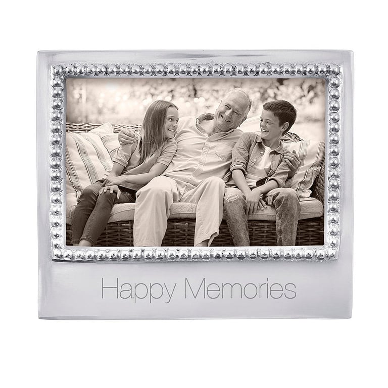 Main view Product Details Mariposa® The HAPPY MEMORIES frame for 6x4 photos by Mariposa® — Capture life’s joyful moments with our Happy Memories Beaded 4x6 Frame. Engraved with a heartfelt message and handcrafted from recycled aluminum, it’s the perfect way to showcase a cherished photo. Whether celebrating family, friendship, or a special milestone, this frame turns meaningful moments into lasting keepsakes. Important Note: Mariposa items are hand engraved. Your piece may differ slightly from the photo. Shop the entire collection: click Mariposa® Design Collection The HAPPY MEMORIES frame for 6x4 photos by Mariposa® Mariposa® WINTER CELEBRATION Savings - Buy More / Save More * Add this item to your cart for the full details of this promotion. Conditions may apply. Model #808813058313 $62.00 only 2 left, order soon. In stock Can be shipped today [?] Your Price Match is Active Your request for a price of $0.00 for a minimum quantity of has been accepted. You have [time] left to purchase this item for $0.00 instead of $62.00 each. Find a Lower Price? We BEAT All Authorized Retailers [?] FEATURESDisplays:4"x6"Material:AluminumFinish:SilverOccasion:Celebrating Travels, Christmas, Friendship, Hanukkah, WeddingStyle:Contemporary, Santa Fe, Eco-Friendly-Recycled, Words & whimsy, Sentiments | ready madeOrientation:Horizontal OnlyBrand:Mariposa®Display Type:Desktop Only Approx. Overall Dimensions:6 3/4"x5 3/4"x1" This item ships in its own box SHARE THIS ITEM Share on Facebook
